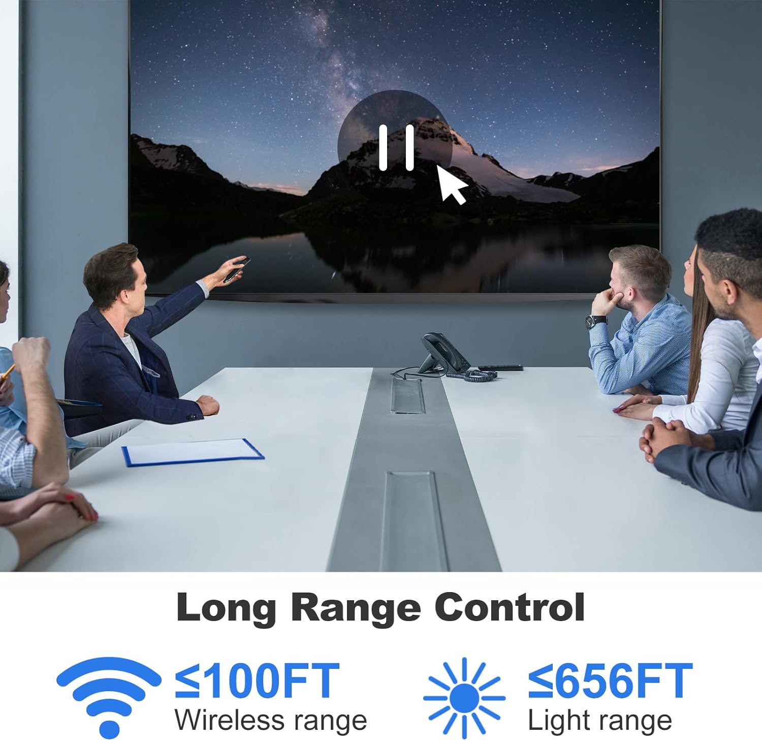 - Long Range Control: Enjoy the freedom to present confidently with the impressive 100 feet wireless range. Highlight key points effortlessly using the 656 feet red laser.