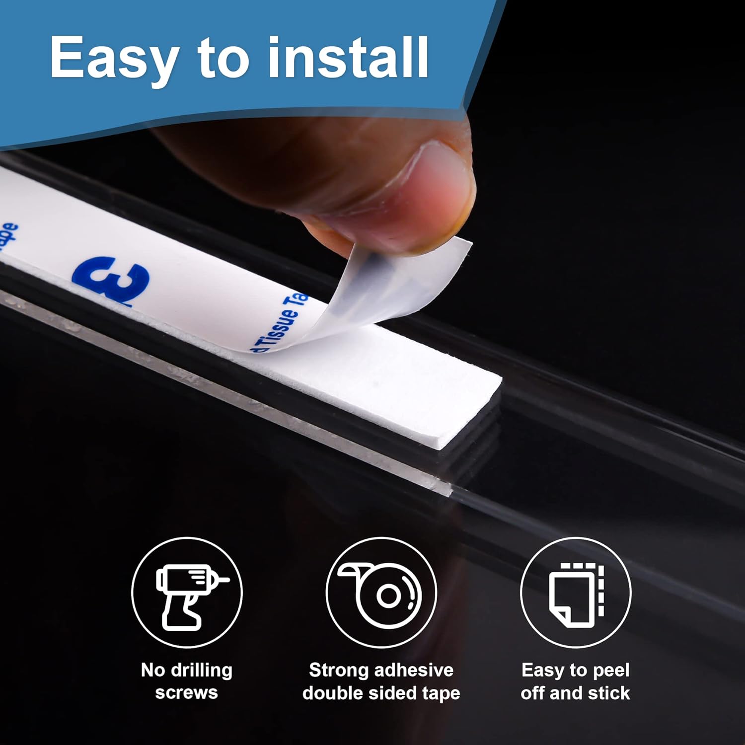 - Easy to install clear acrylic sign holder with powerful 3M adhesive tape No drilling no screws required.Applicable to virtually any flat surface such as drywall metal plastic wood glass etc