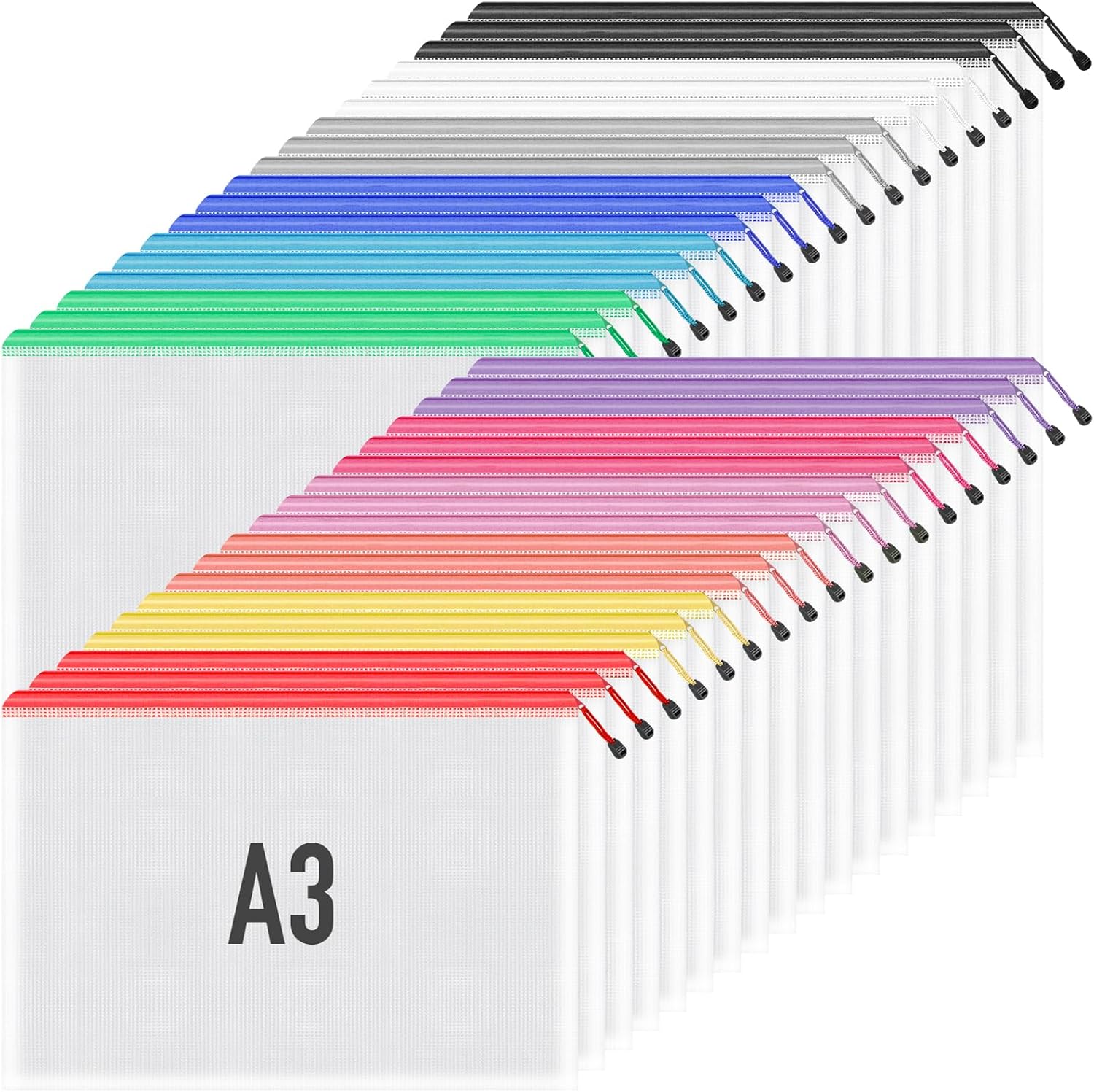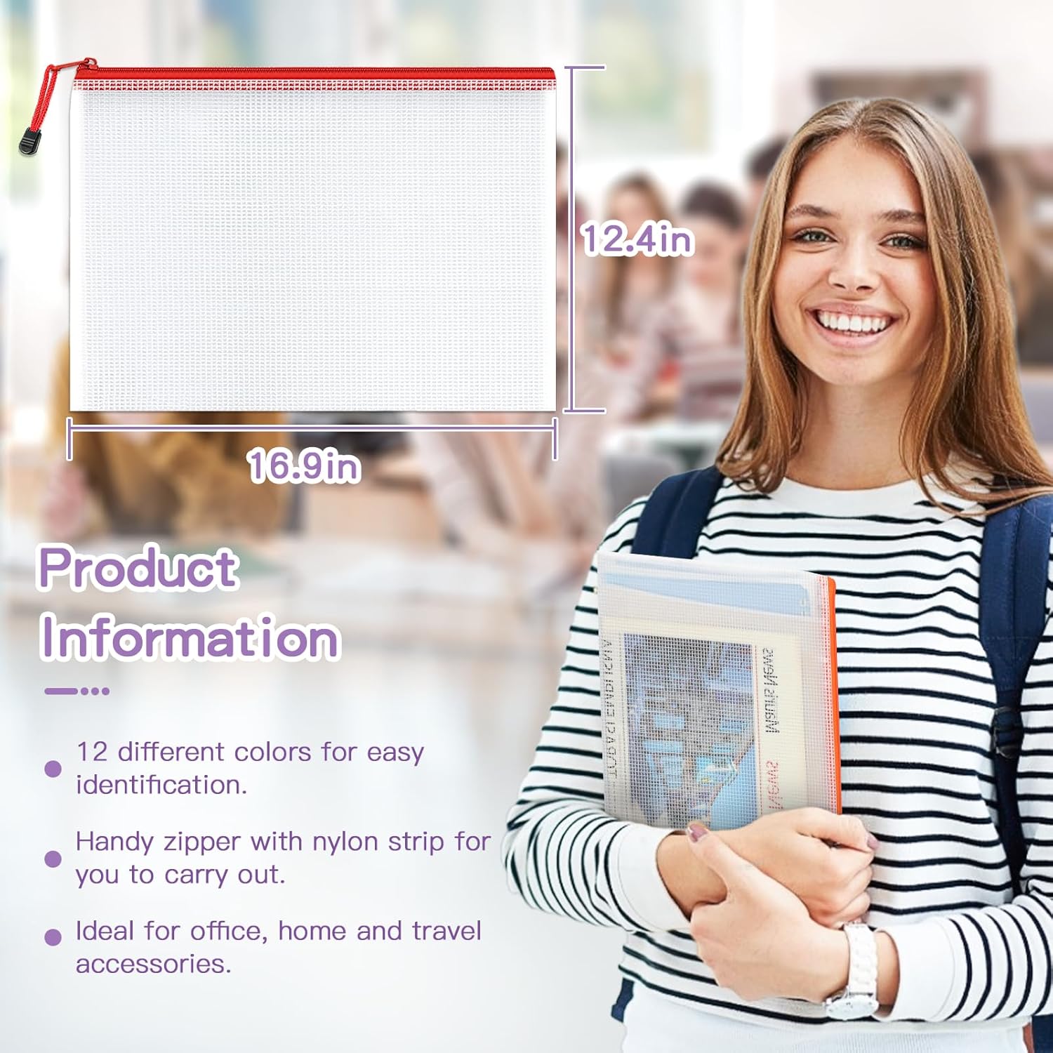 Umriox Mesh Zipper Pouch, 16.9x12.4 in (12 Colors, 36 Packs), Zipper Bags, Board Game Storage Bags, Clear Zipper Pouches for Puzzles, Games, Cross Stitch Projects and Classroom Supplies