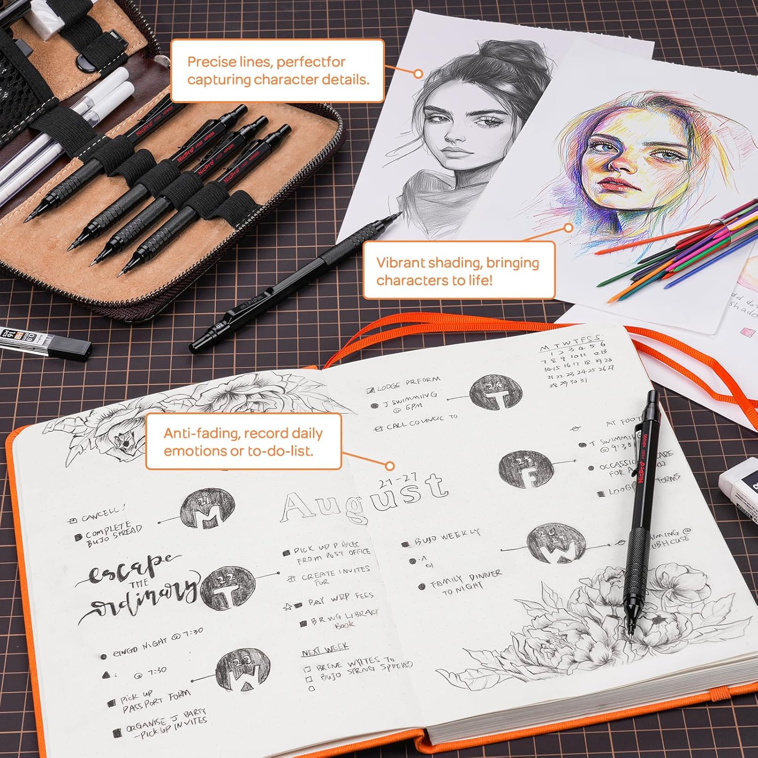 - 5. Ideals for teachers and students, artists, professionals,engineer alike. Perfect for writing, drafting, drawing, sketching or architectural working. Convenient to carry your whole mechanical pencils set everywhere