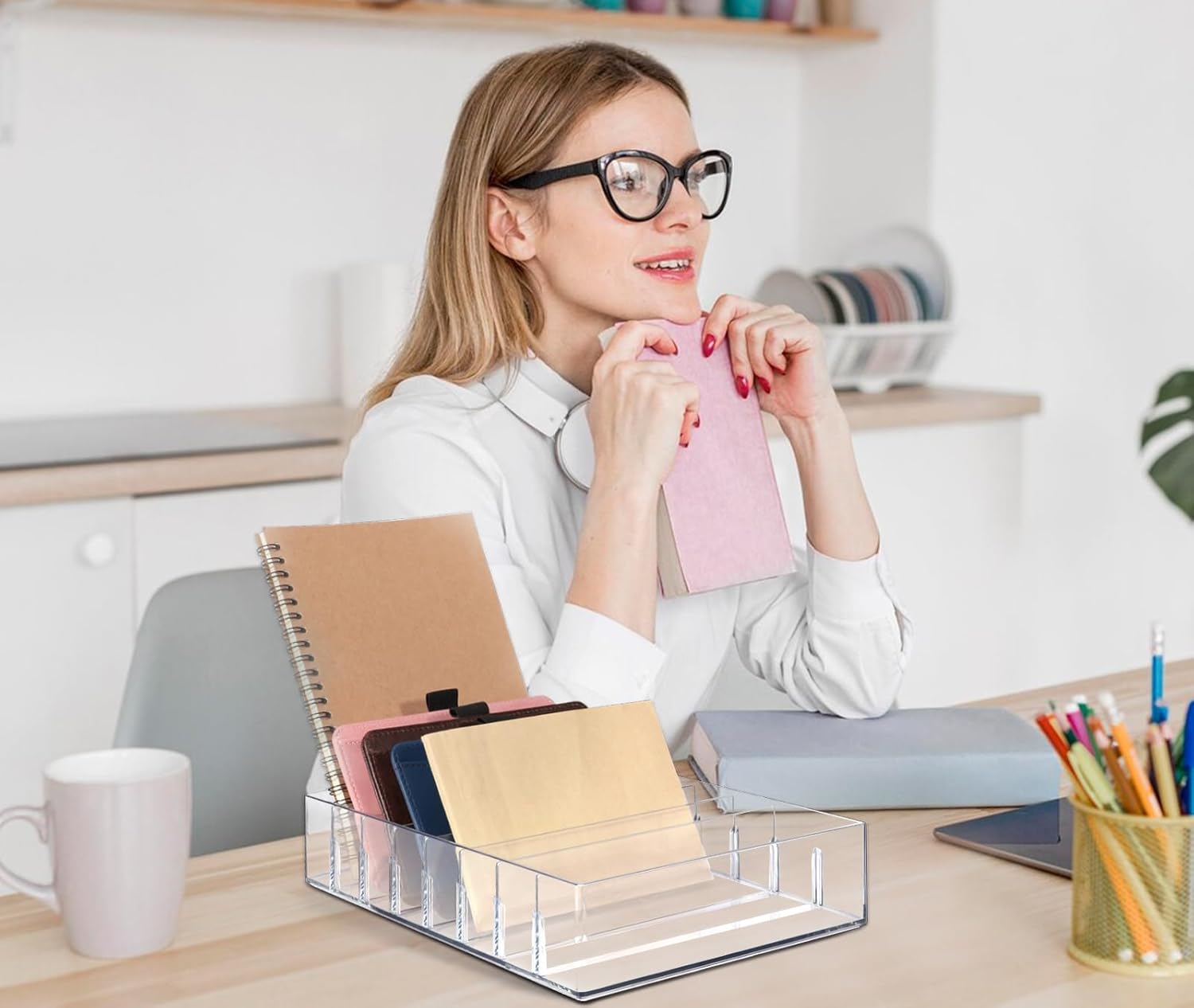 - Multi-purpose:Acrylic cash clip for sorting cash, business cards, cash, letters and notepads, 8-slot acrylic desk and drawer divider, wallet organizer, cash tray for stuffing cash. Can also be used to store data cables; Helps you organize your cash. Separate cash for wallet, clutch, mail, cash, cards, budget.