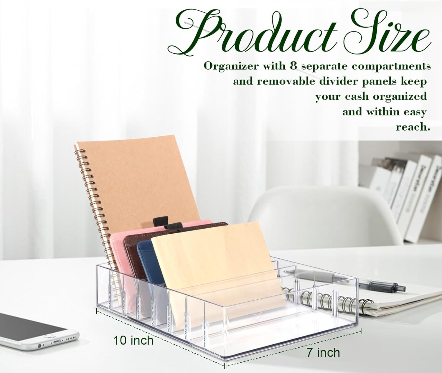 XUWAIDSGN Large Acrylic Cash Organizer 8 Section Clear Money Budget Tray Organizer Plastic Divider Bill Storage Holder for Cash Envelope (Clear)