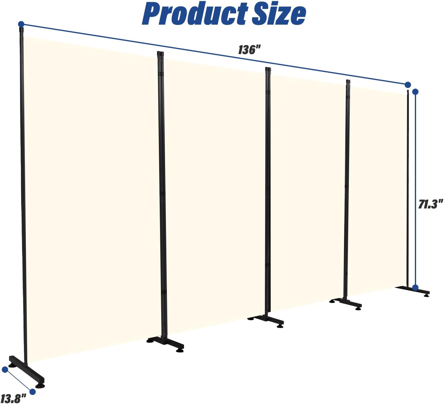 Room Divider 6ft Room Dividers and Folding Privacy Screens, 4 Panel Partition Room Divider Fabric Panel, Indoor Wall Divider for Room Separation Freestanding Space Separators for Bedroom Office Studio