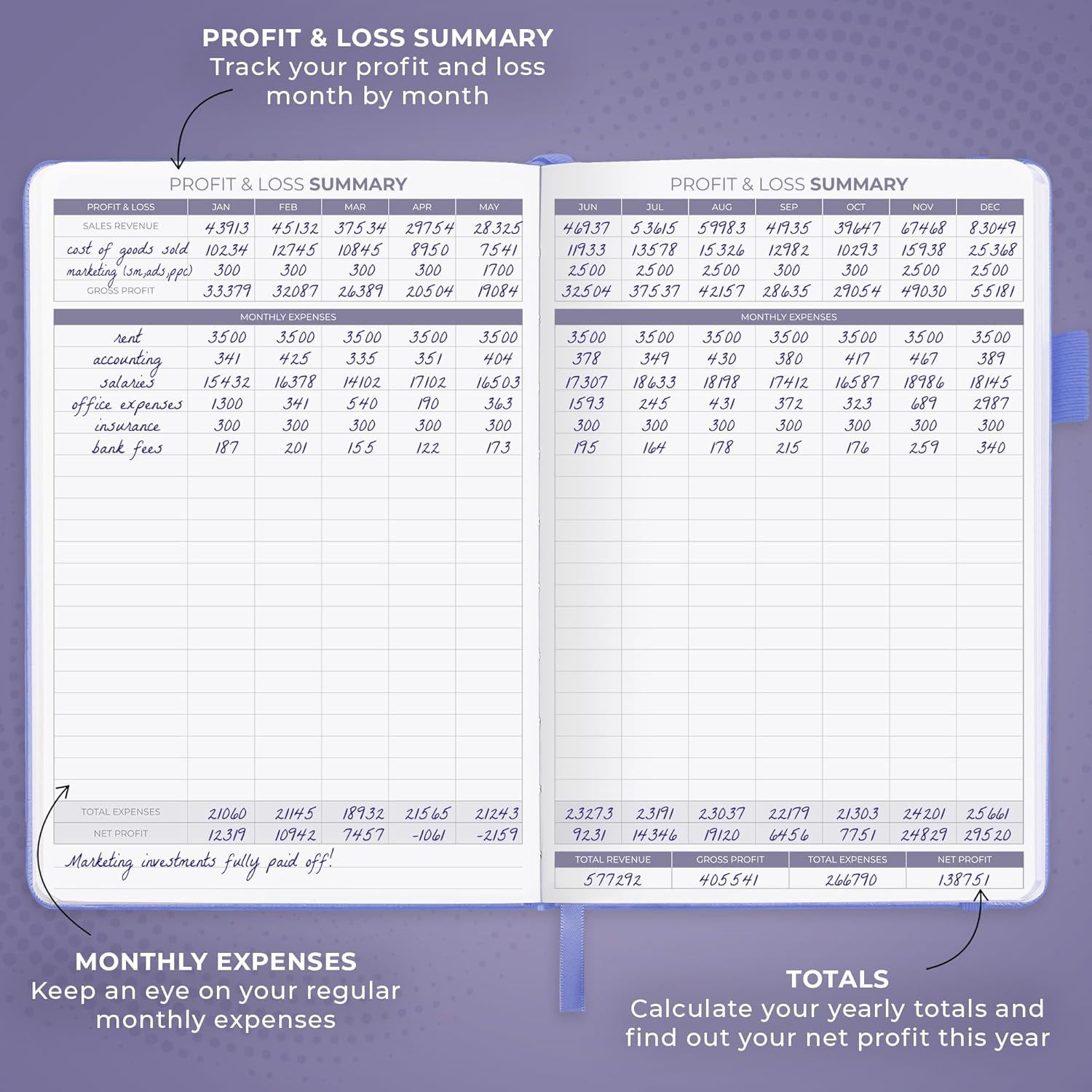 - COMPACT A5 FORMAT & DURABLE DESIGN: This bookkeeping record book comes in A5 format (5.8 by 8.3 inches) and has an eco-leather hardcover, 120gsm no-bleed paper, elastic, pen loop, bookmark, pocket for notes, and a user guide.