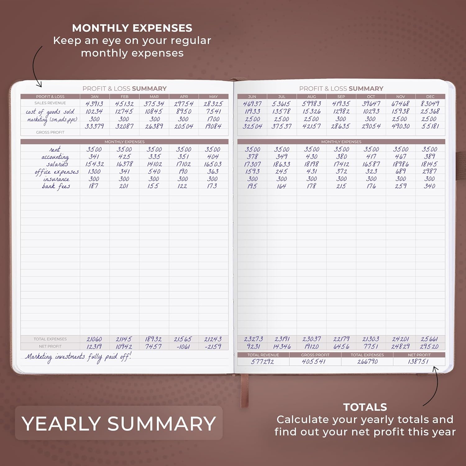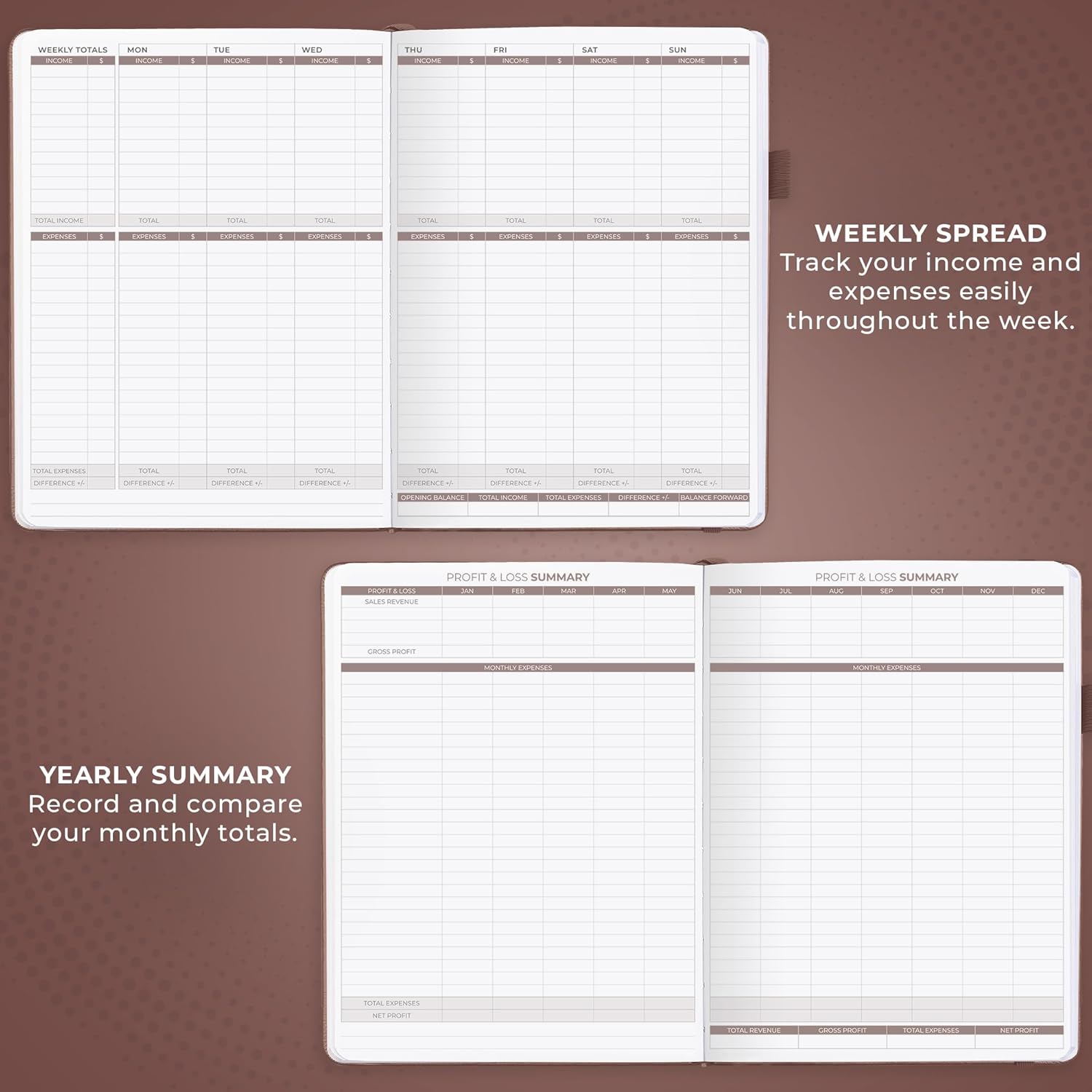 - 2 FULL YEARS OF STRESS-FREE ACCOUNTING: This accounting book is undated and lasts 2 years and has 225 pages, including 106 weekly views, 2 annual summaries, empty note pages, and, at the back, a spacious pocket for receipts.