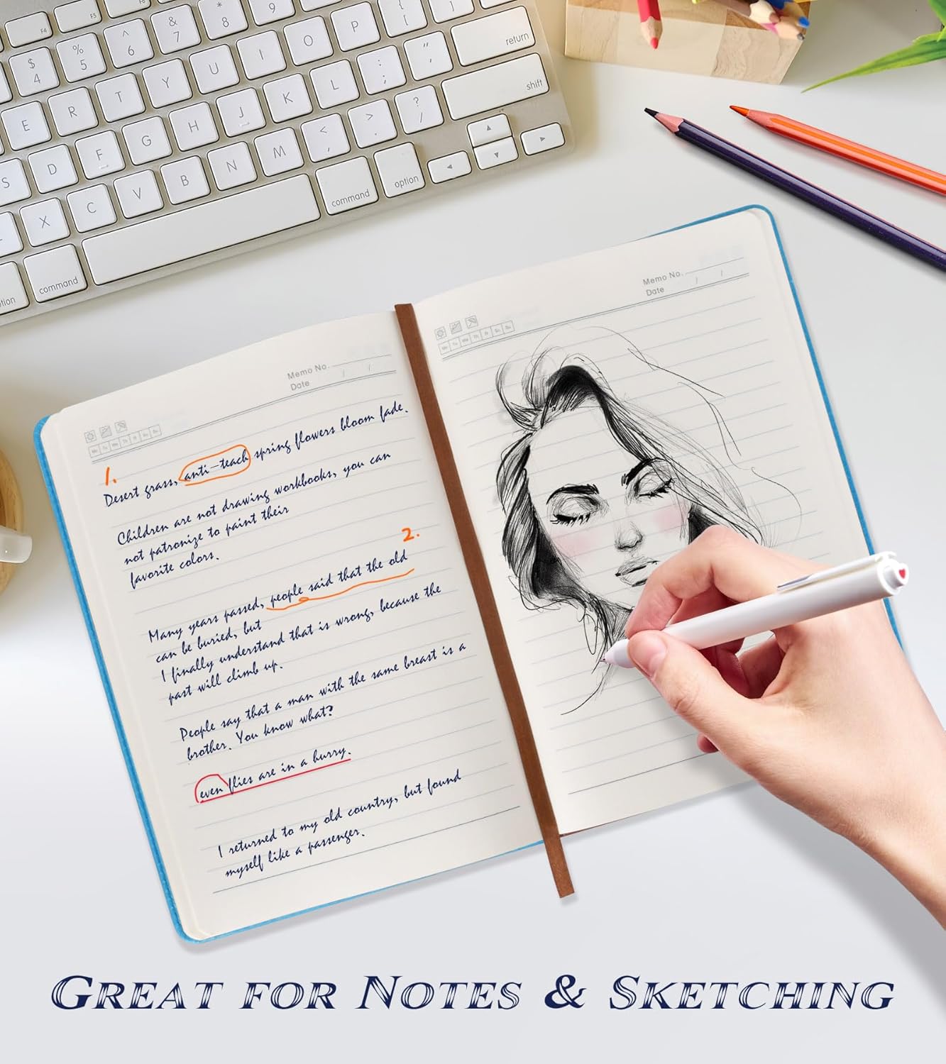 - 【256 Pages Premium Paper】We use 256 Pages (128 Sheets) 80Gsm acid-free paper thick lined paper,Line spacing 8.5mm,so you can confidently use most pens, pencils, and markers without ghosting and bleed-through.The Light yellow paper resists damage from light and air and the paper protects your eyes from irritation.