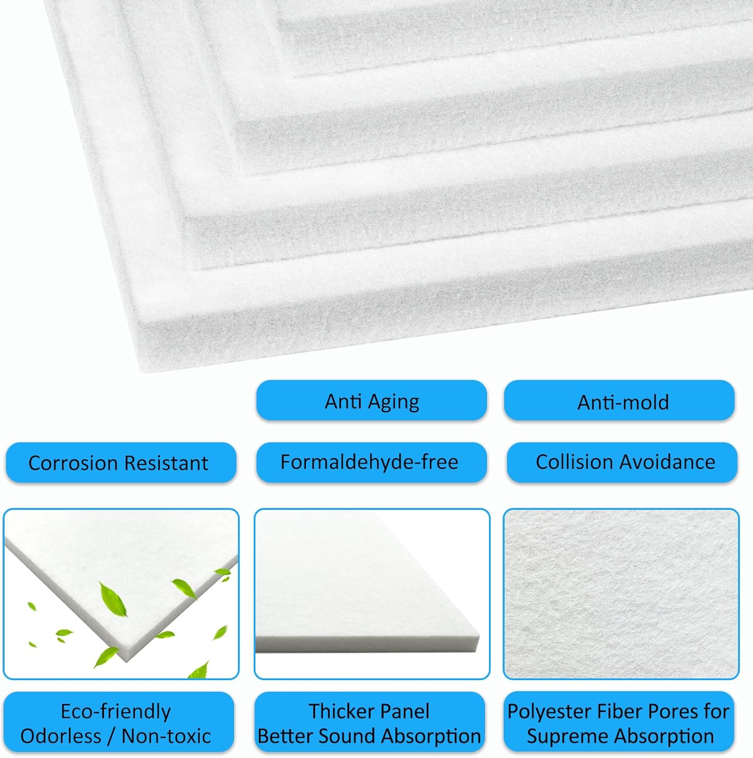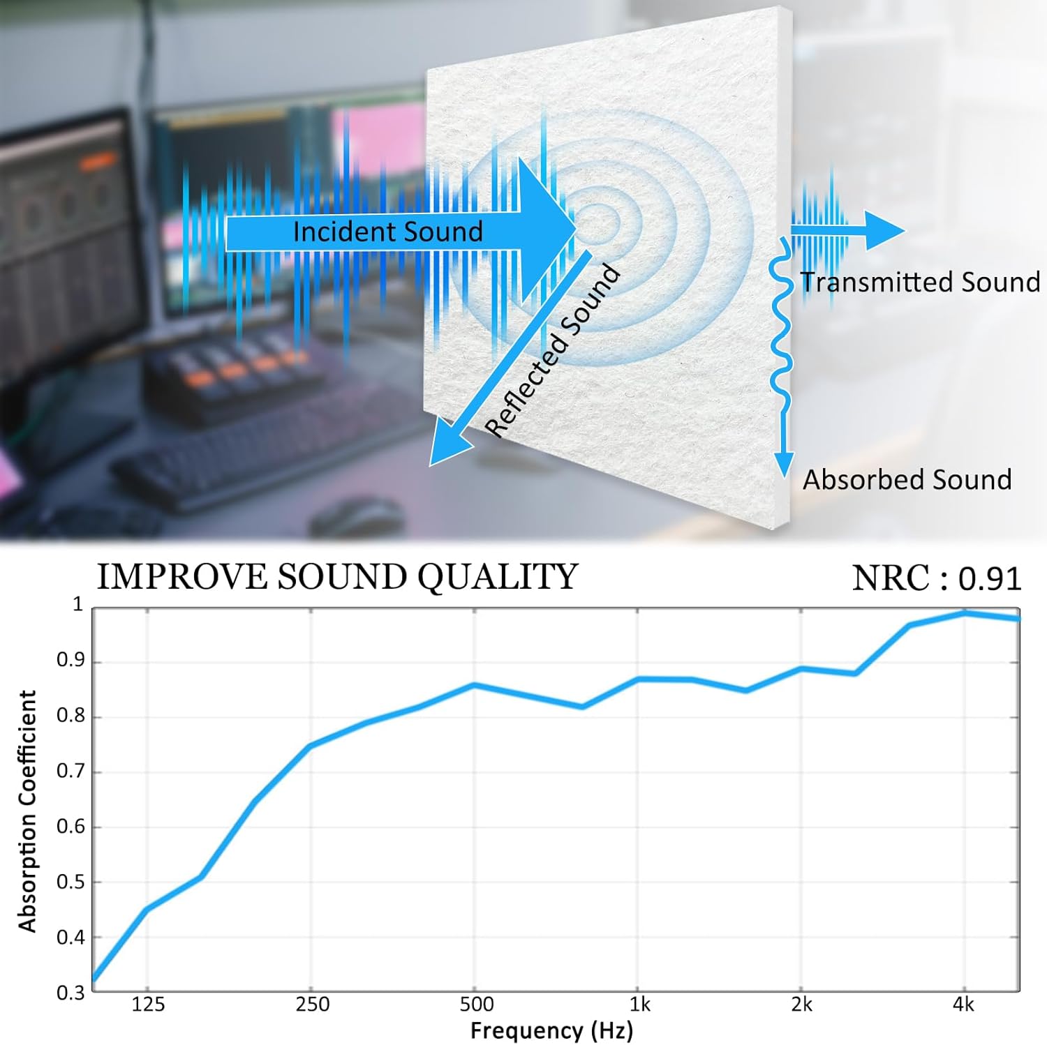 - 【IMPROVE SOUND QUALITY】: These durable acoustic absorption panels are thickened to more effectively absorb sound energy, reduce reverb, echo and mid high frequency noise; Average absorption coefficient: 0.83; NRC(noise reduction coefficient): 0.91