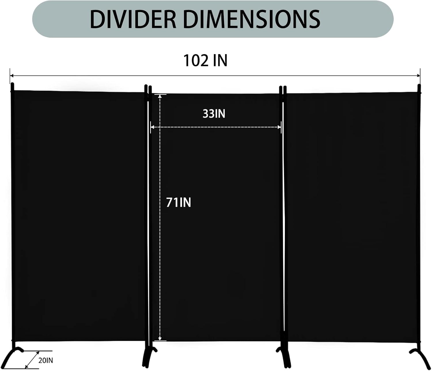 - 【Classic Design】Room dividers have black, blue, brown, white, and brown five classic solid colors you can choose from, the privacy screen seamlessly blends in with any interior design. The dark gray frame and pure color fabric provide a neat and classic look