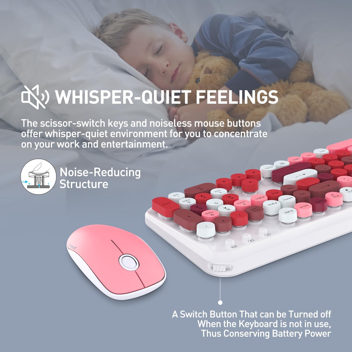 - Wireless Keyboard and Mouse Full Size : Thanks to the silent micro-motion technology, the mouse clicks are nearly silent, eliminating bothersome knocking sounds that could disturb you and your family. The cordless mouse DPI levels (1600) for fast and precise cursor control, all while maintaining a quiet operation. Whether you're working or playing, you'll never have to worry about disturbing others' rest.