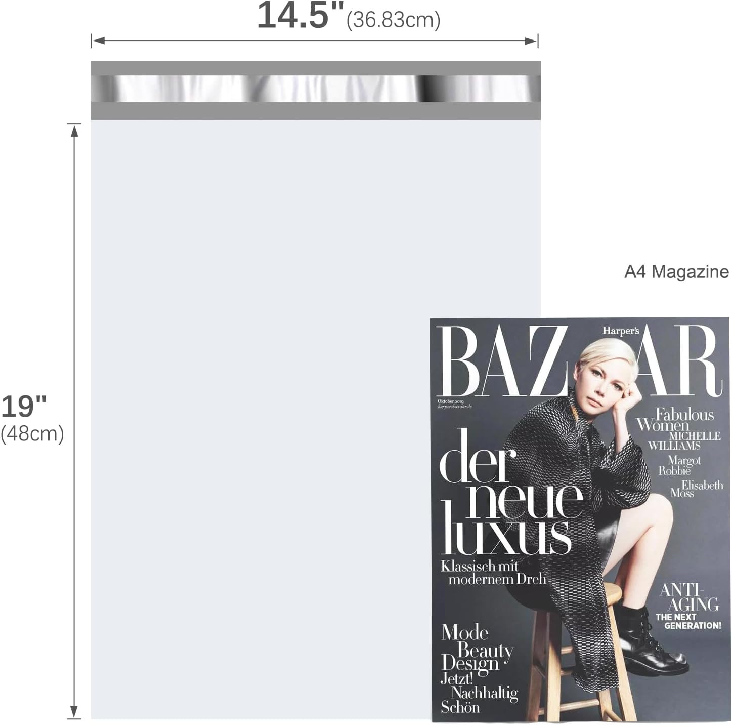 - 14.5x19" Poly Mailers-The Fuxury plastic shipping bags,pack of 400pcs, with white color.The bulk packaging bags save your time on reordering.