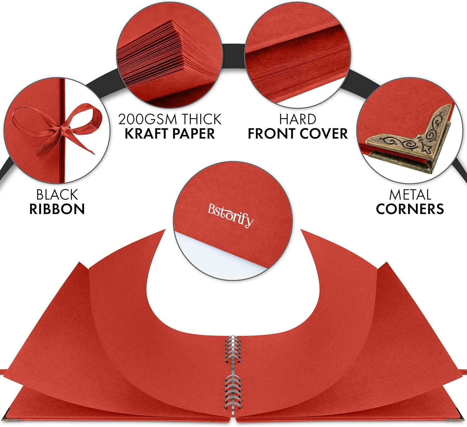 Bstorify Square Scrapbook Photo Albums 50 Pages (11 x 8.5 Inch) Red Thick Paper, Hardcover, Ribbon Closure - Ideal for Your Scrapbooking Albums, Art & Craft Projects (Red, 11 x 8.5 Inch)