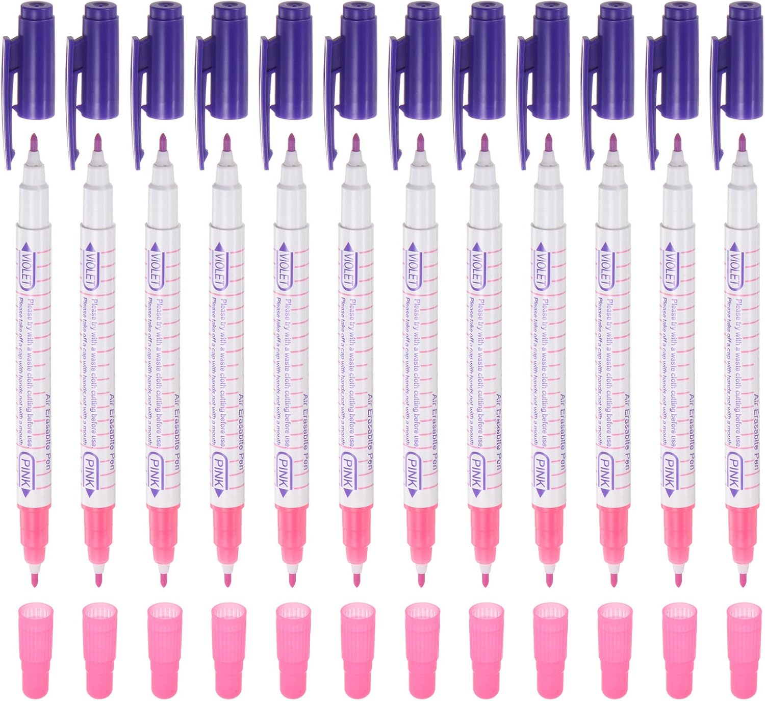 HARFINGTON 12pcs Disappearing Ink Fabric Marker Pen Double Ended Erasable Ink Fabric Sewing Marking Pens Water Soluble Ink Tailor's Pen Marking Tracing Tools for Quilting, Purple Pink