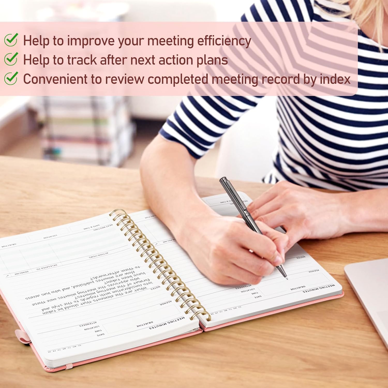 - MADE FOR WOMEN & MEN ACROSS ROLES & WORK ENVIRONMENTS: Built for executives, project managers, assistants, and remote workers, this notebook adapts to any professional environment. Whether lead a brainstorming session, run a client meeting, online meeting, project or event planning, year-end summary or work planning for back to work season, this business notebook help you stay organized, efficient, always ready to take action. The perfect welcome to set new hires up for success.