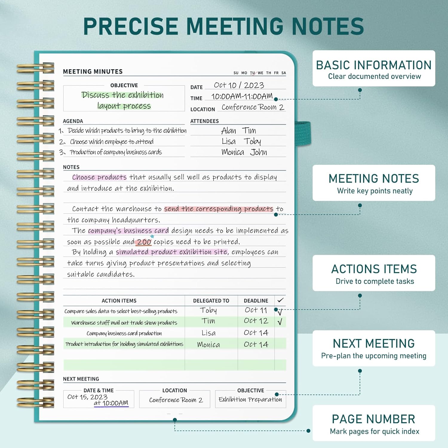 - EFFICIENCY BOOST & AGENDA SYSTEM: The WEMATE meeting notebook boosts workflow efficiency by 30% using two built-in agenda templates and action item tracking, cutting meeting prep time significantly. Designed for team managers, project planners, teachers, and students, it systematically transforms complex discussions into orderly decisions. Its priority sorting function clearly organizes to-do items, reducing omission risks while ensuring critical tasks execute first.