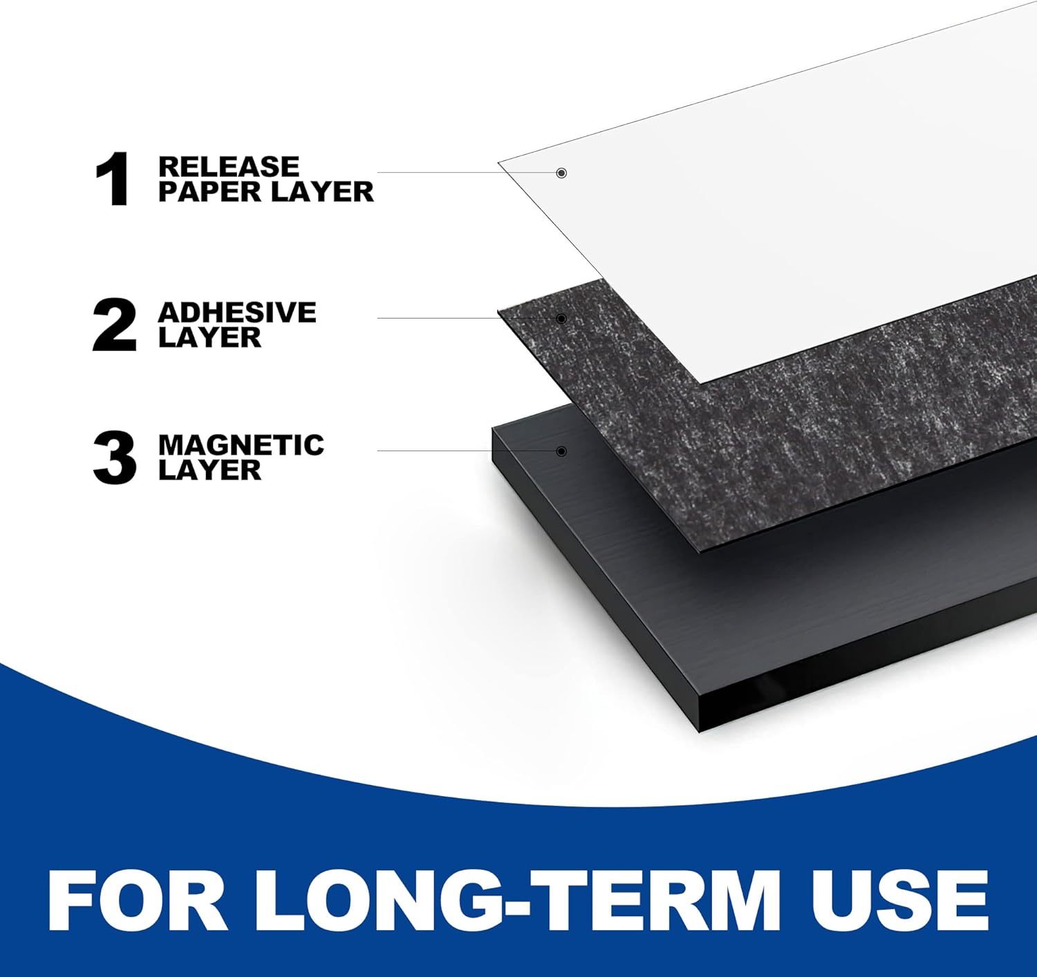 - STRONG MAGNETS STRIPS: Our magnetic strips have good adhesion, the special adhesive backing and the protective film on the back to stick to surfaces without peeling off.