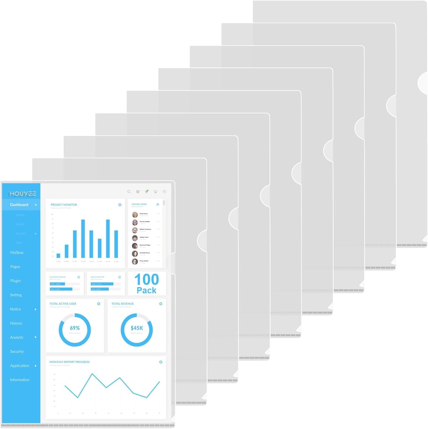 HOUYEE 100 Pack Heavy Duty Clear Document Folder, L-Type Folder Plastic Paper Sleeve Copy Safe Project Pockets Fit for Letter Size Paper, for Home, Office, and School Use