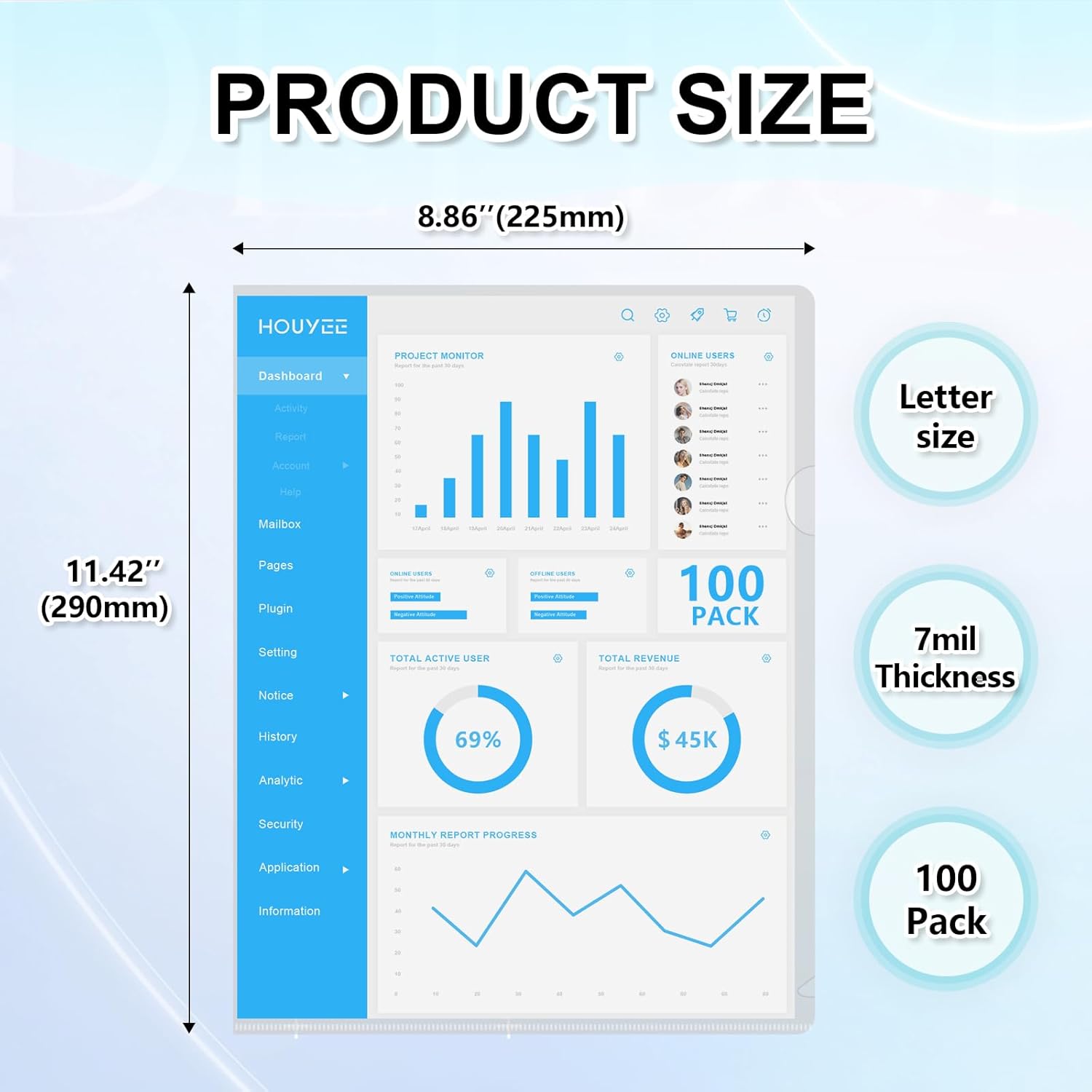- 【Fits Letter Size Paper】: document folder with plastic sleeve is 8.86"(W) x11.42"(L) which fits standard 8.5 x 11" paper, works with expanding folder, accordion document organizers easily.