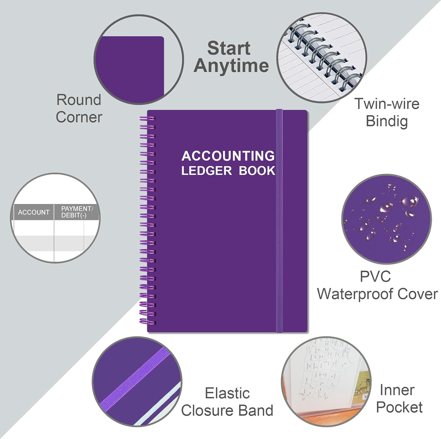 Accounting Ledger Book - A5 Ledger Book for Bookkeeping, Small Businesses & Personal Use, Expense Tracker Notebook for Tracking Money, Expenses, Deposits & Balance, 5.8" x 8.4", Purple