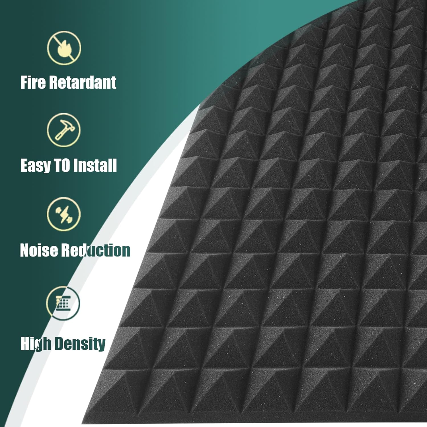 4 Pack pyramid Acoustic Foam Panels, 48 x 24 x 2" Sound Absorbing Panels High Density Studio Wedge Tiles Fire Resistant Acoustic Panels for Home,Office, Recording Room, Studio (Black)