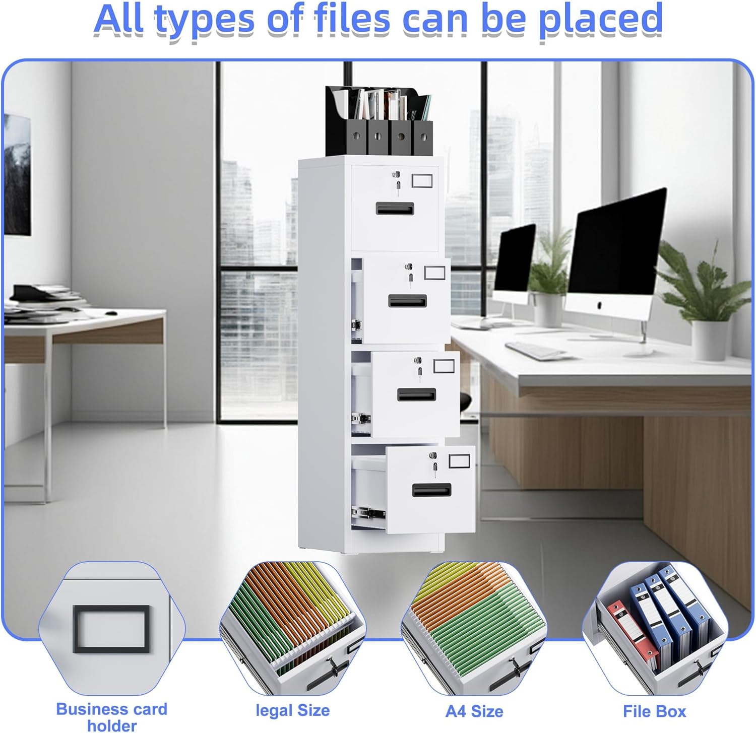4 Drawer File Cabinet, Metal Vertical File Storage Cabinet with Lock, Office Home Steel Vertical File Cabinet for A4 Letter/Legal Size, 14.96" W x 17.72" D x 55.2" H, Assembly Required