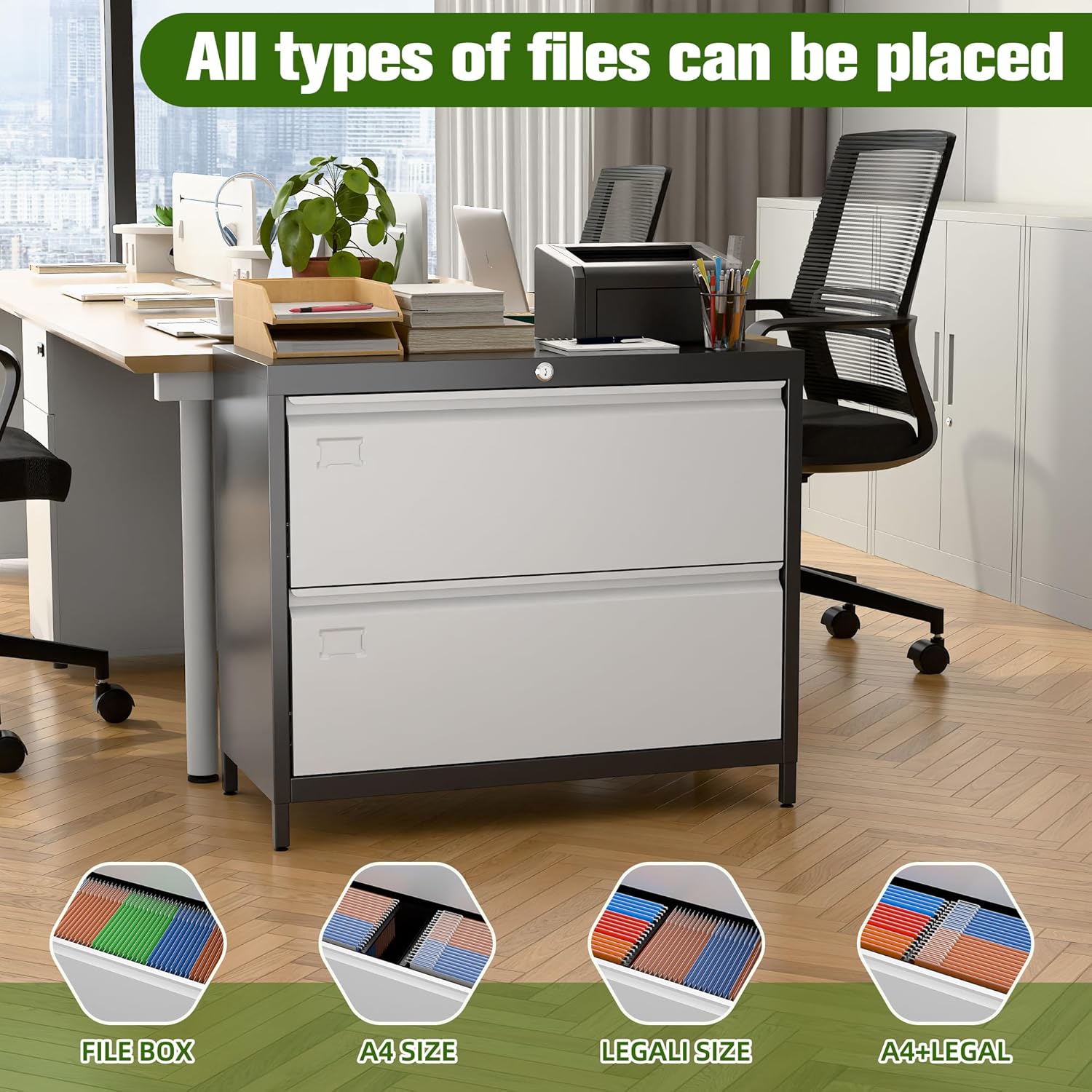 - Durable Steel Construction & Scratch-Resistant Finish:Built with heavy-duty solid steel, this lateral file cabinet delivers reliable stability for home offices or professional workspaces. The smooth powder-coated surface resists scratches and fingerprints while allowing effortless cleaning—maintaining a sleek, modern look for years.