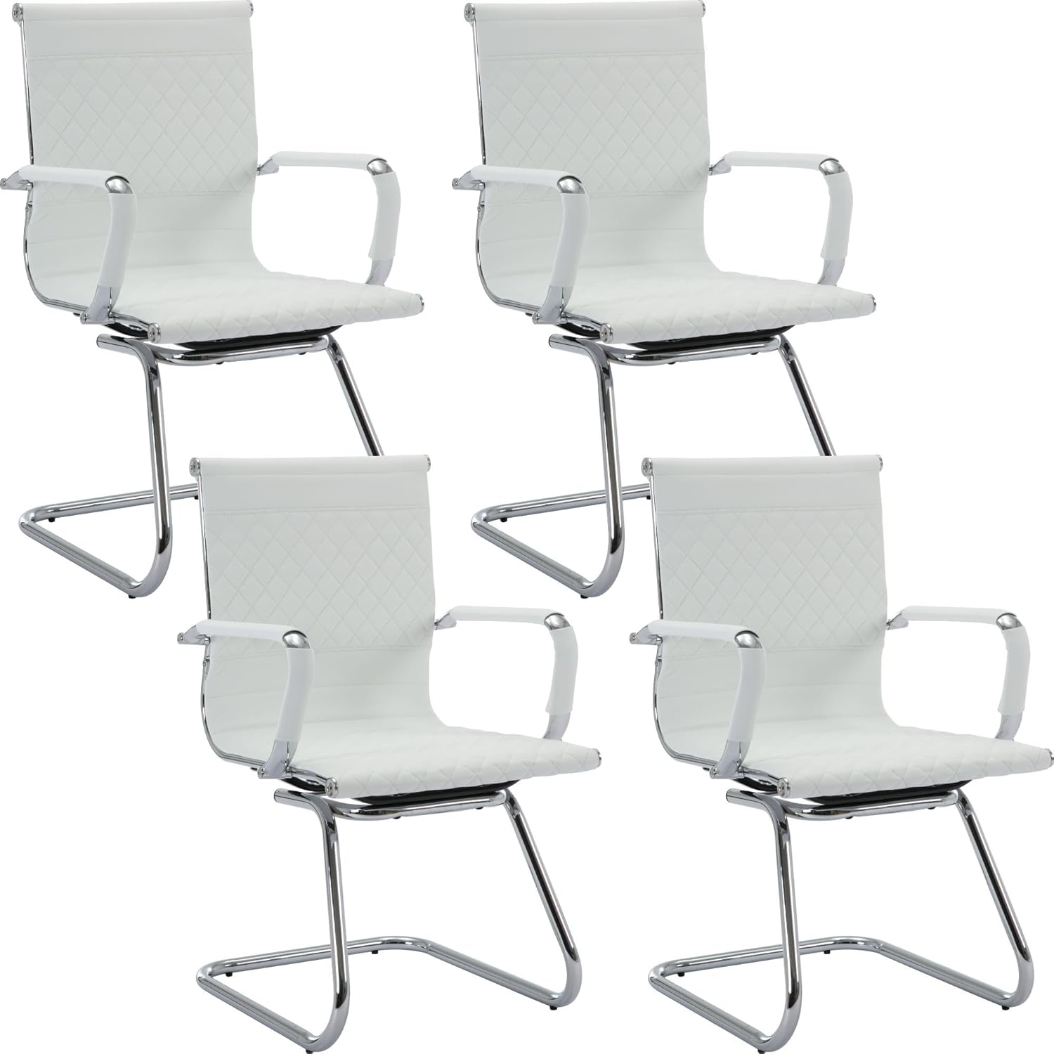 Office Guest Chairs - Reception & Waiting Room Set of 4, Modern PU Leather Desk Chairs, White