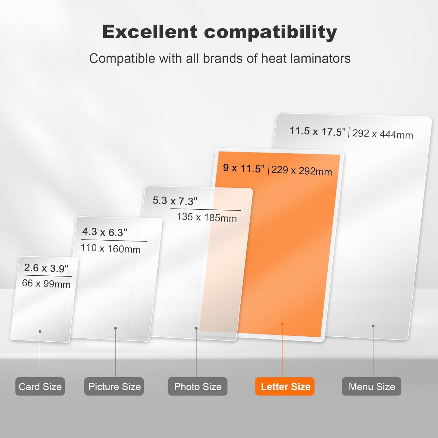 - [Compatibility] The Laminating Pouches measures 9 x 11.5 inches, letter size, you can cut it to any size you want and it is compatible with all thermal laminator brands.