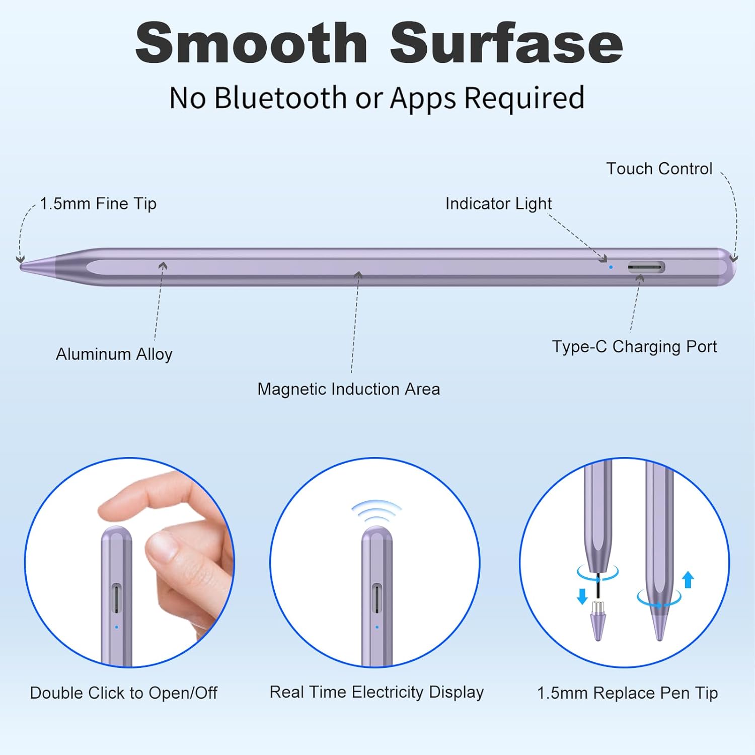 Stylus Pen for iOS&Android Touch Screens, Active Pencil for Samsung, Smart Digital Stylus Pens for Lenovo/Huawei/Vivo/Mi and Other Tablets, iPhone/Google Pixel Smart Phones Drawing&Writing (Purple)