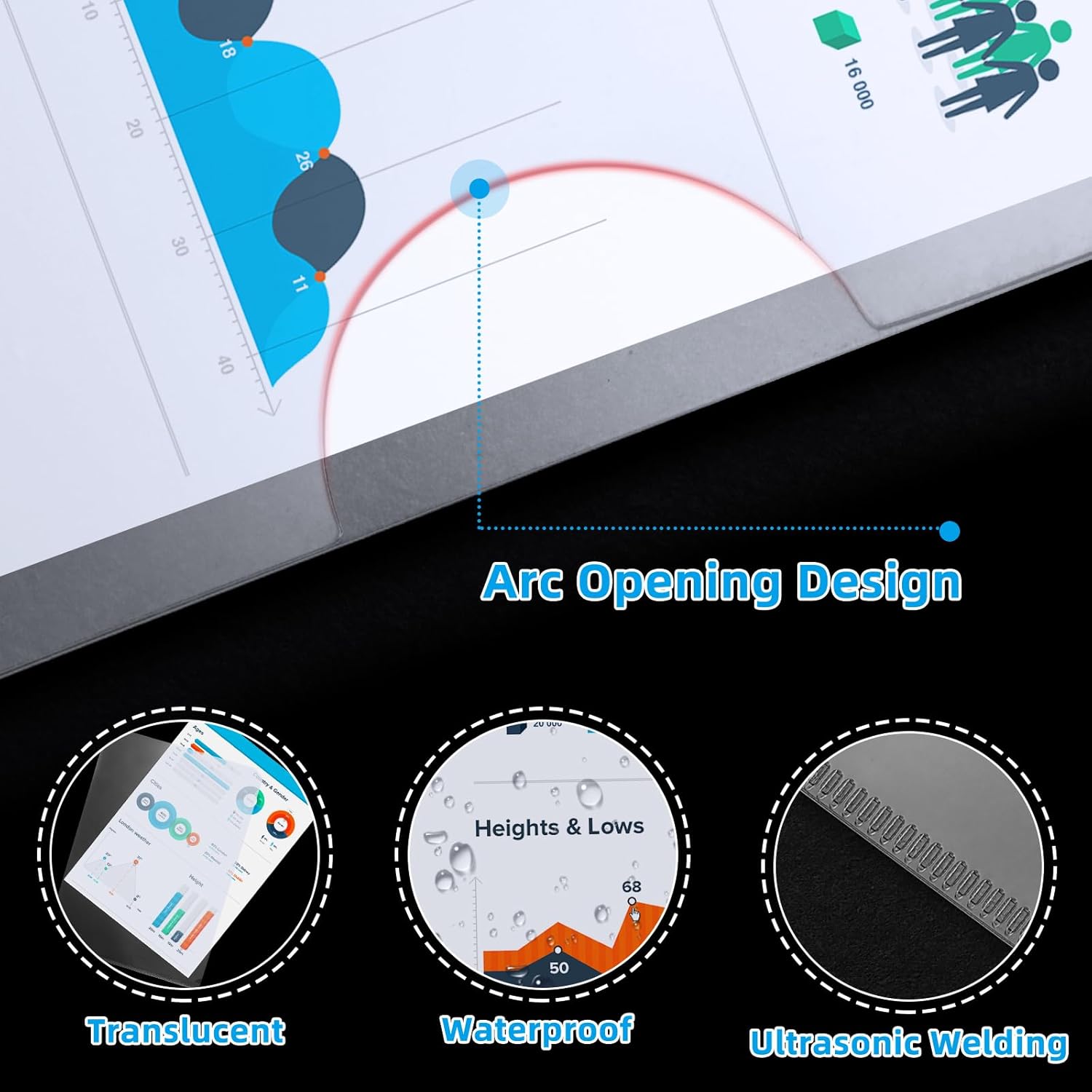 - 【L-Type Sheet Protectors】Our folders feature a two-sided seal with top and right-side openings, allowing for easy loading from the top or side. The thumb notch design provides convenient access