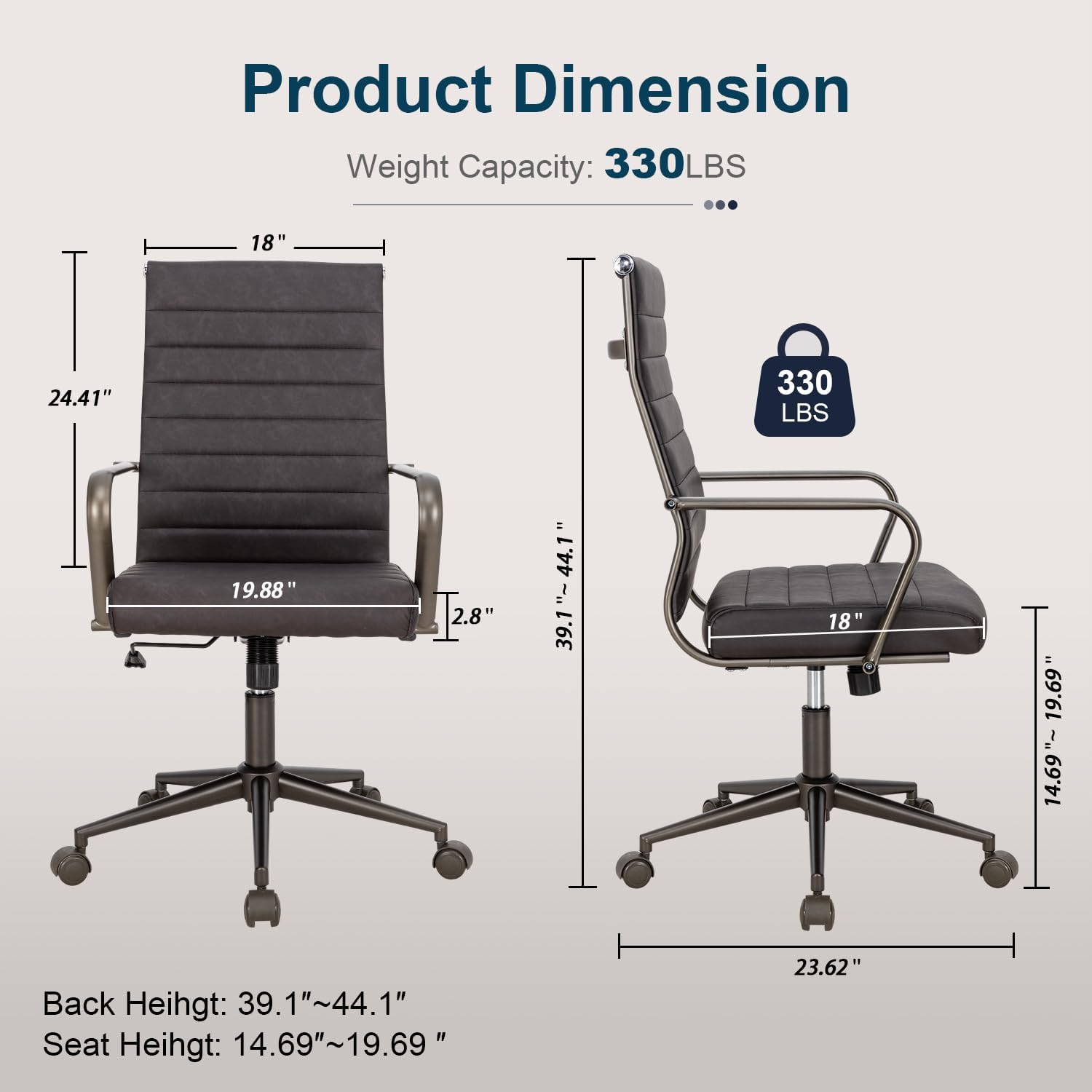 Okeysen Office Desk Chair Conference Room Chairs Modern Ergonomic Executive Swivel Chair Adjustable Height PU Leather Home Desk Chair with Armrests Comfy Computer Task Chairs with Wheels (Retro Black)