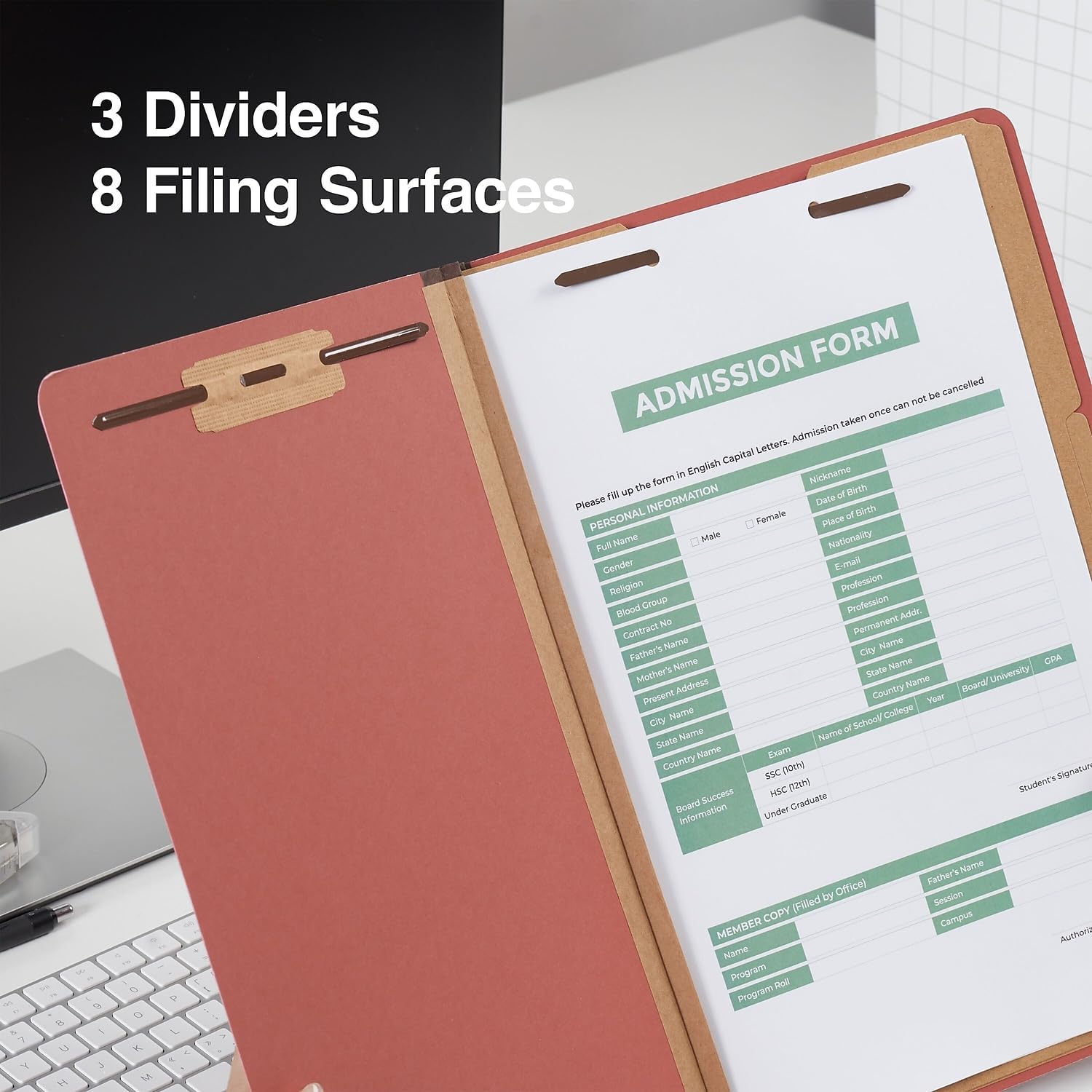 - Eight fasteners and three dividers allow you to subdivide papers within the folder.