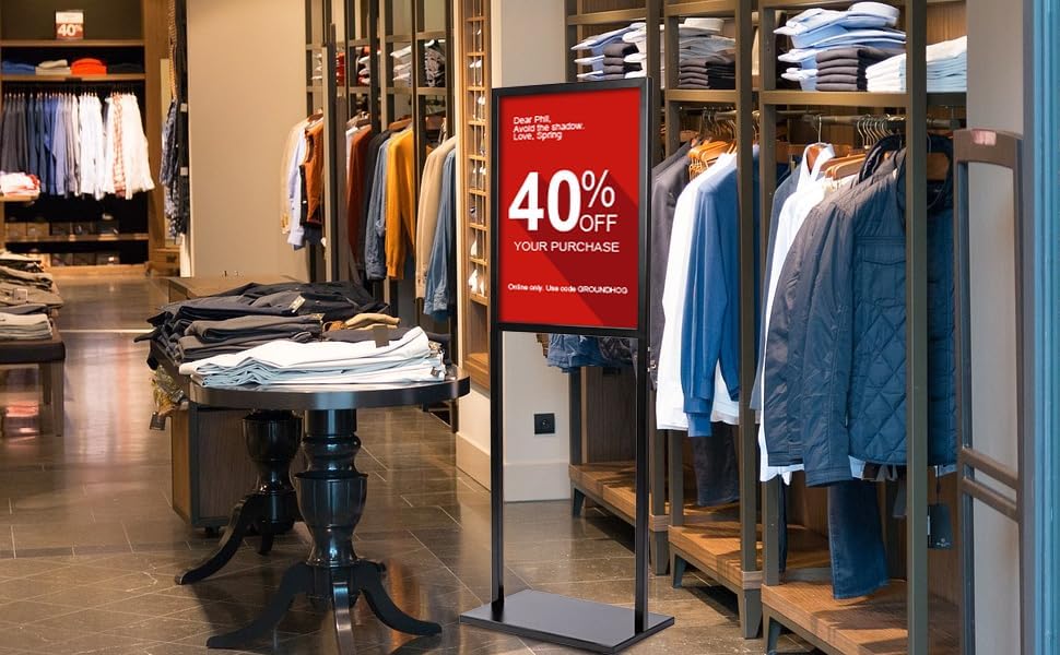 - Double Sided Display Stand : This signage displays two 18"W x 24"H sign attracts more attention from multiple directions. You can put poster in both the back and the front as you like.Perfect for menu or promotional messages for businesses, restaurants, bars, cafes, stores or welcome sign for party, weddings.indoor used.