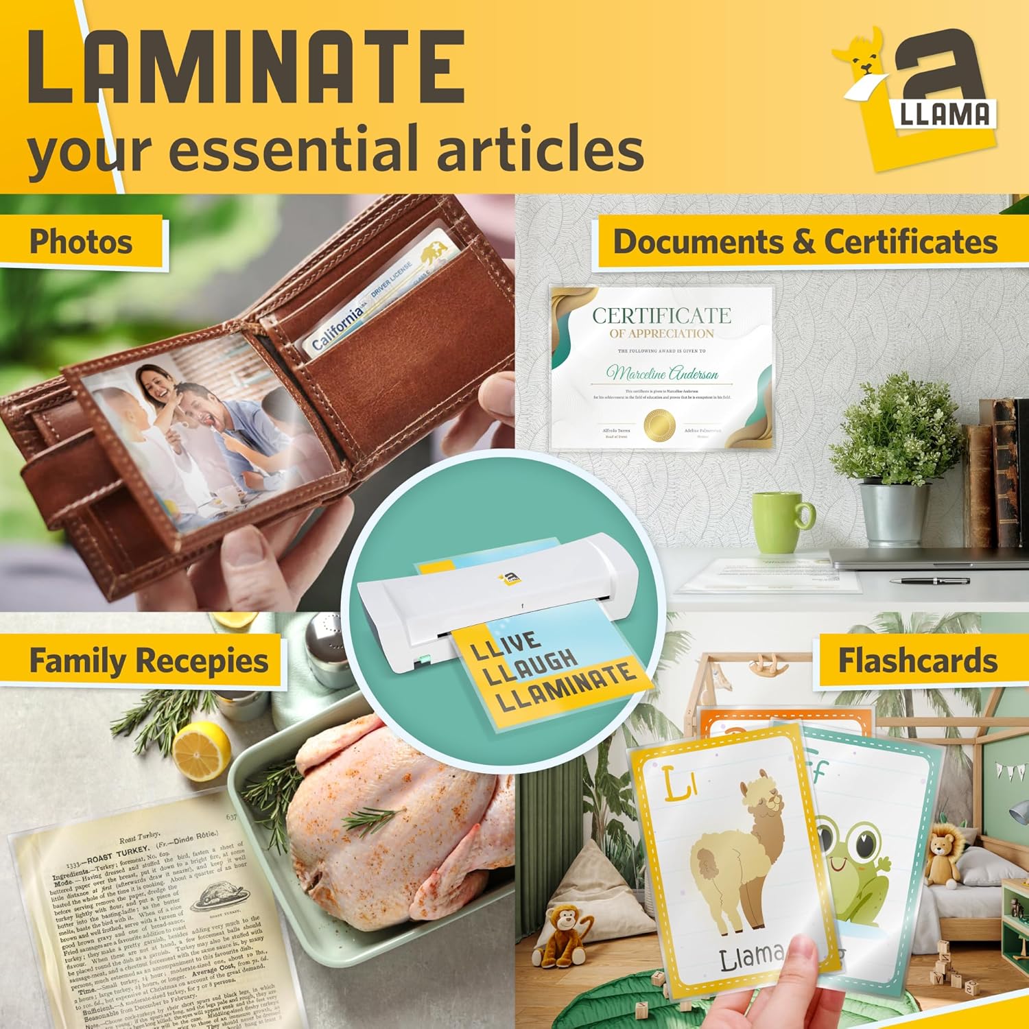 - 🦙 EXTRA-STURDY (5 MIL) PROTECTION: Thermal lamination sheets have waterproof, UV-ray, and tear-resistant attributes; The robust coating strengthens laminating sheets 5 mil to endure challenging circumstances and frequent use