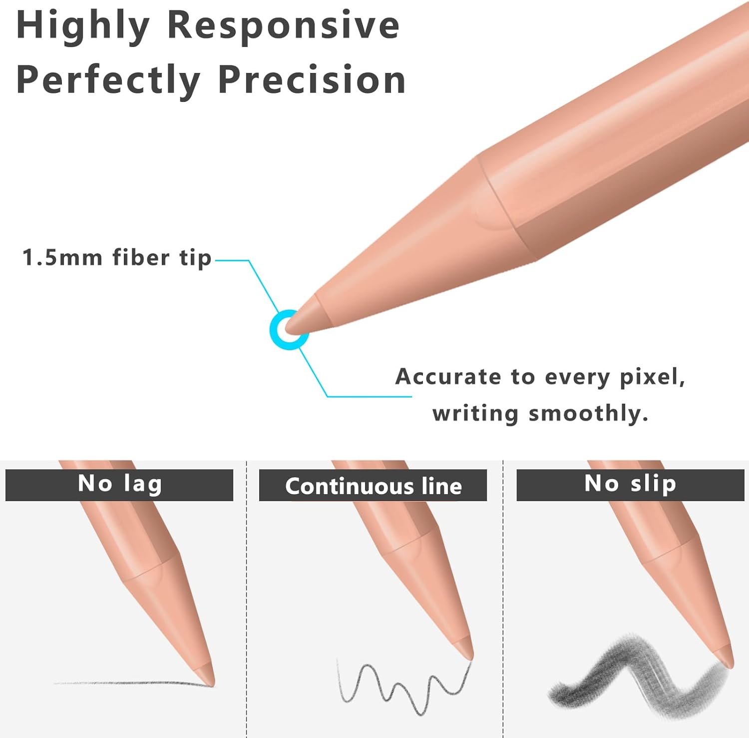 - [High Precision Tip] The iPad pen uses an ultra-fine 1.5 mm tip as a real pen providing small, precise depictions without break and latency to unleash your creativity. The nib is made of newly upgraded material, which is more durable and wear-resistant in use. No PRESSURE-SENSITIVE DESIGN