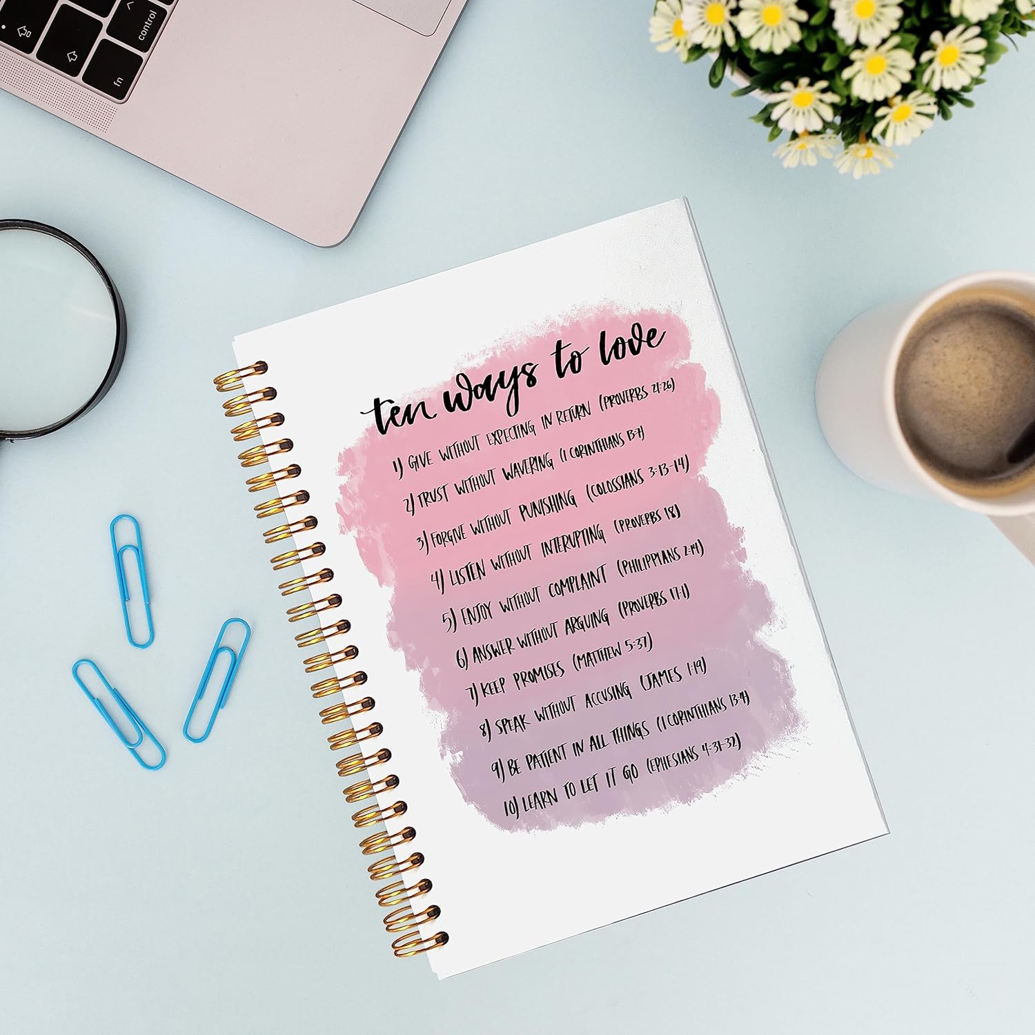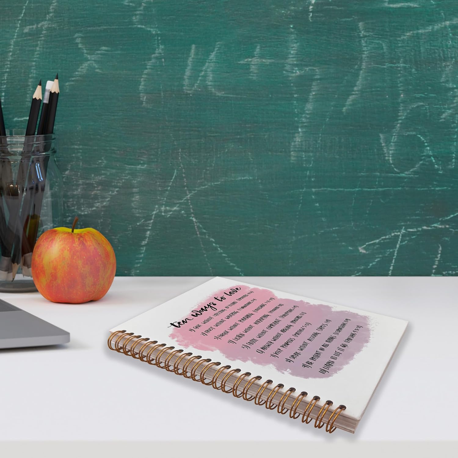 VNWEK Ten Ways to Love Inspirational Bible Verse Scripture Pink Spiral Notebook Journal 5.5 x 8.3 inches,Christian Lined Hardcover Spiral Notebook,Christian Gifts for Women Teen Girls