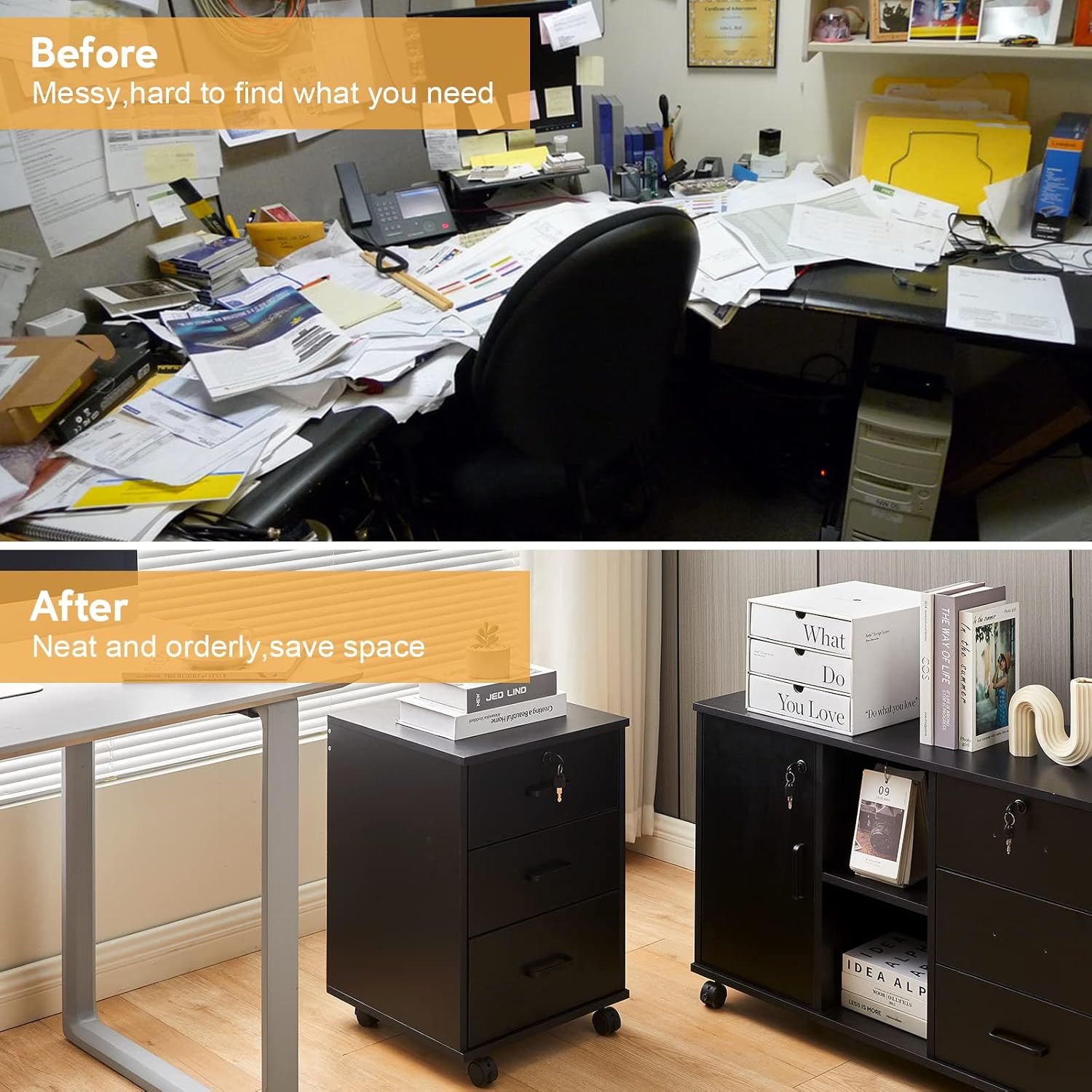 - Secure Locking System: Keep your important documents and private items safe. The cabinet features a secure lock and two separate keys, providing peace of mind and confidential storage. Note: Only the top drawer can be locked.