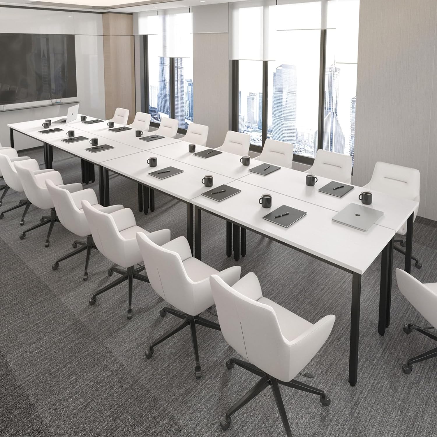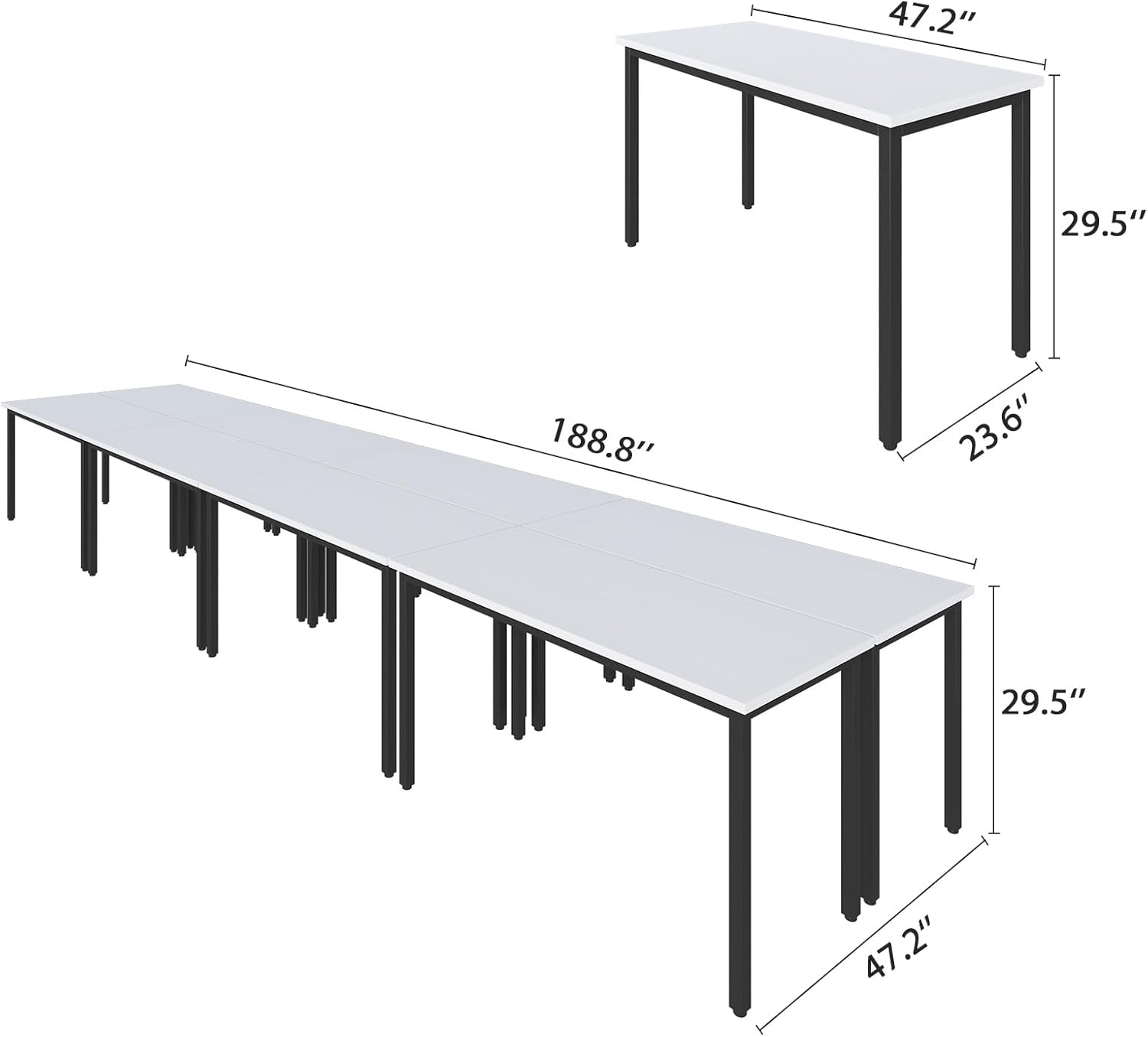 - PERFECT SIZE: 8PCS conference tables accommodate 20 people. Measuring 188.8"D x 47.2"W x 29.5"H. Dimension of each single computer desk is 47.2" L x 23.6" W x 29.5" H for random combination. Stylish and Sleek design ideal for any office, conference room, meeting room and study room.