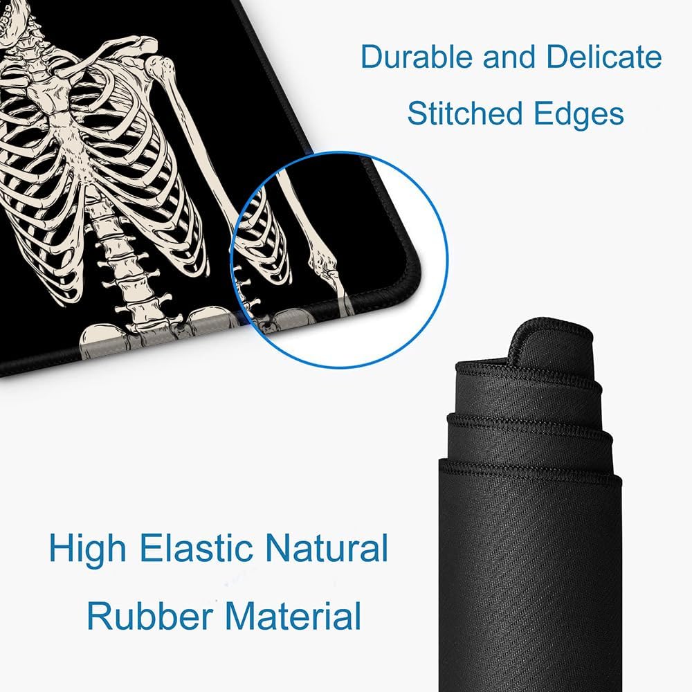 Large Mouse Pad, Extended Gaming Mousepad, Non-Slip Rubber Base Keyboard Mouse Mat Desk Pad for Gamer, Laptop, Office & Home, 31.5 x 11.8 in, Black Skull