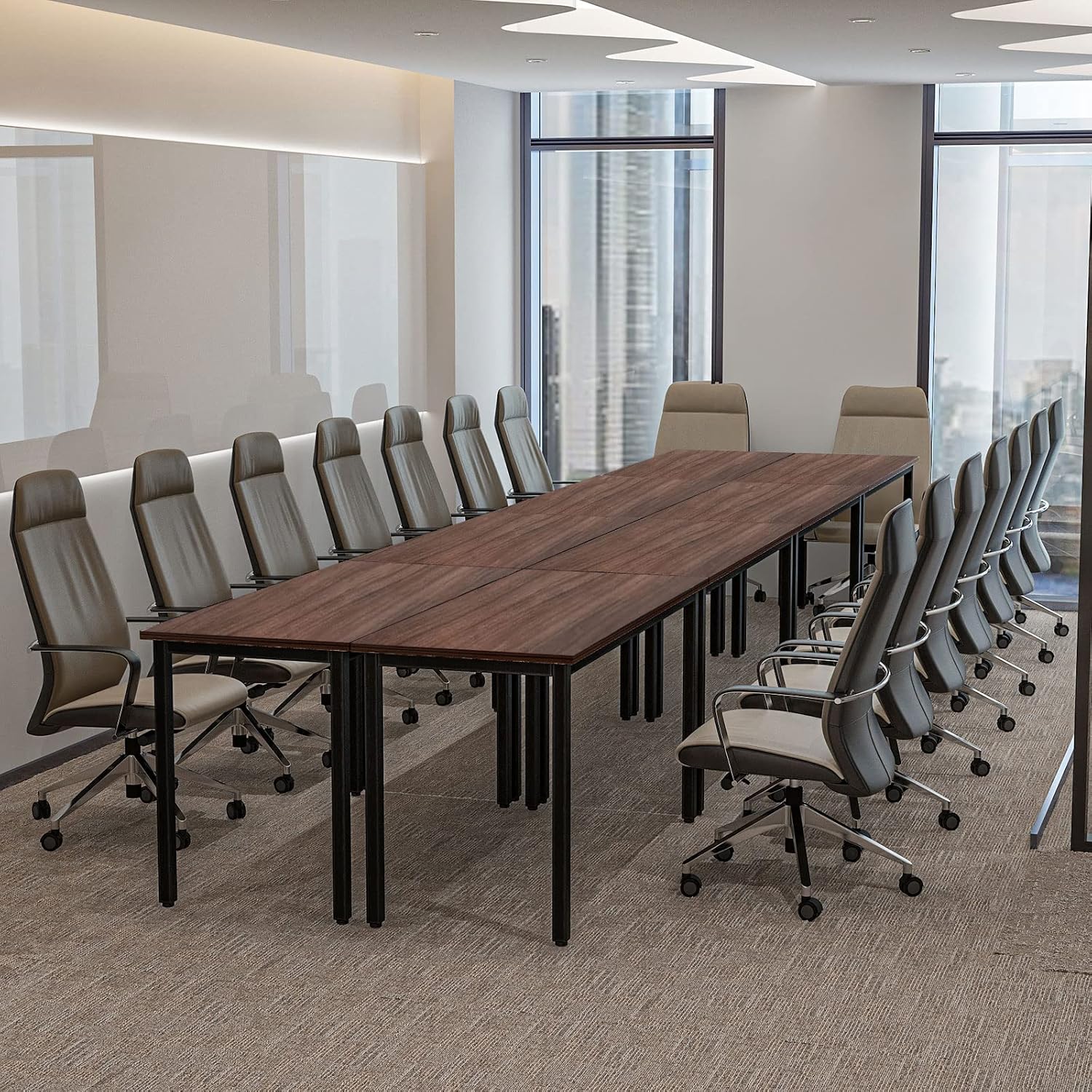 - PERFECT SIZE: 8PCS conference tables accommodate 20 people. Measuring 220.4"D x 47.2"W x 29.5"H. Dimension of each single computer desk is 55.1" L x 23.6" W x 29.5" H for random combination. Stylish and Sleek design ideal for any office, conference room, meeting room and study room.