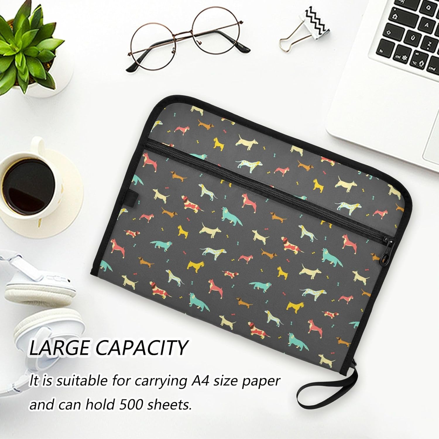 Gredecor 13 Pockets File Folder Organizer A4/Letter Water Resistant Dachshund Dog Black Document Bag with Zipper Filing Folder Expanding File Pouch Storage for School Office