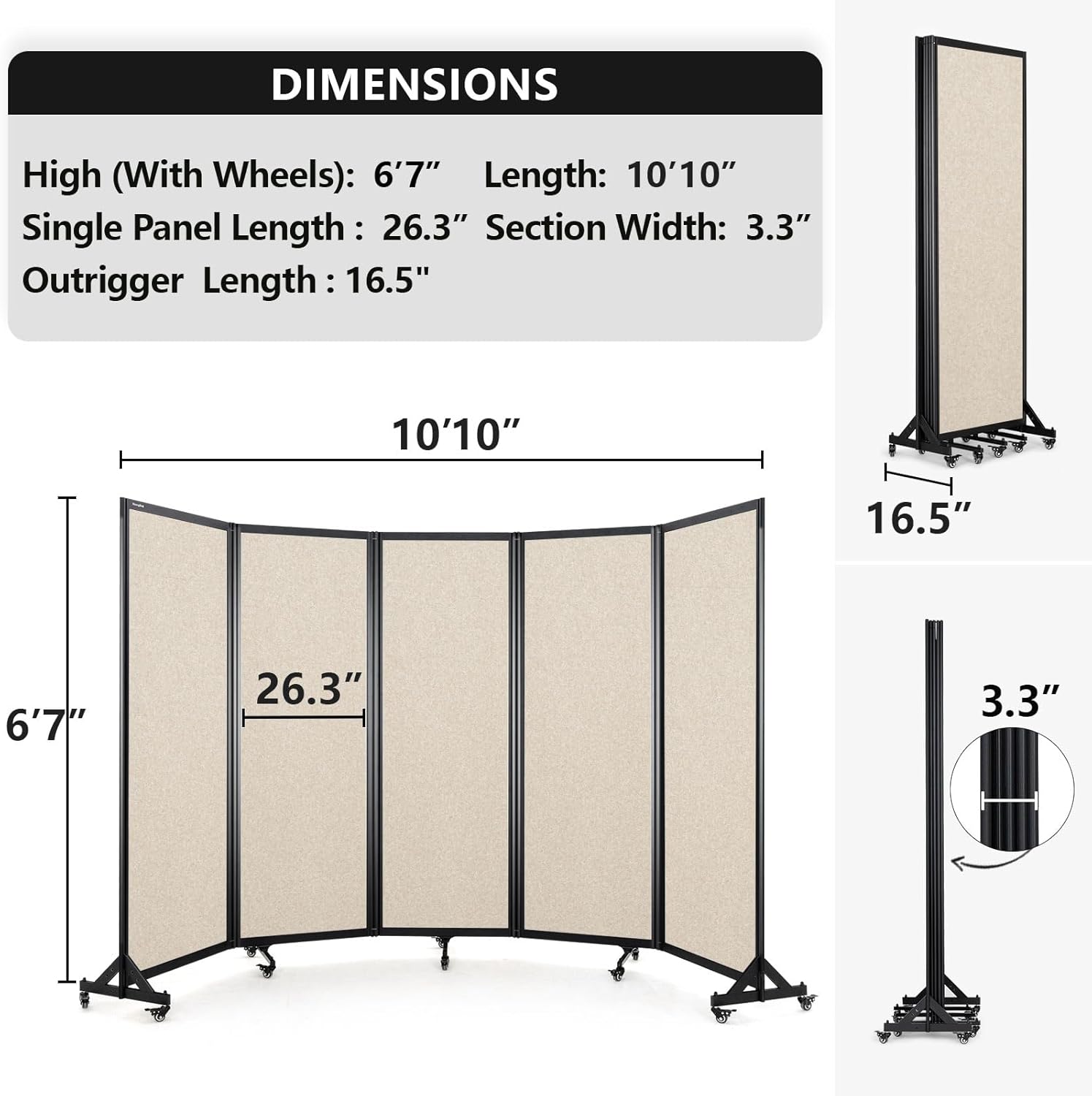 Room Partition,Folding Privacy Divider,Office Partition Dividers,Office Dividers Wall, 10'6"W x 6'7"H,Beige