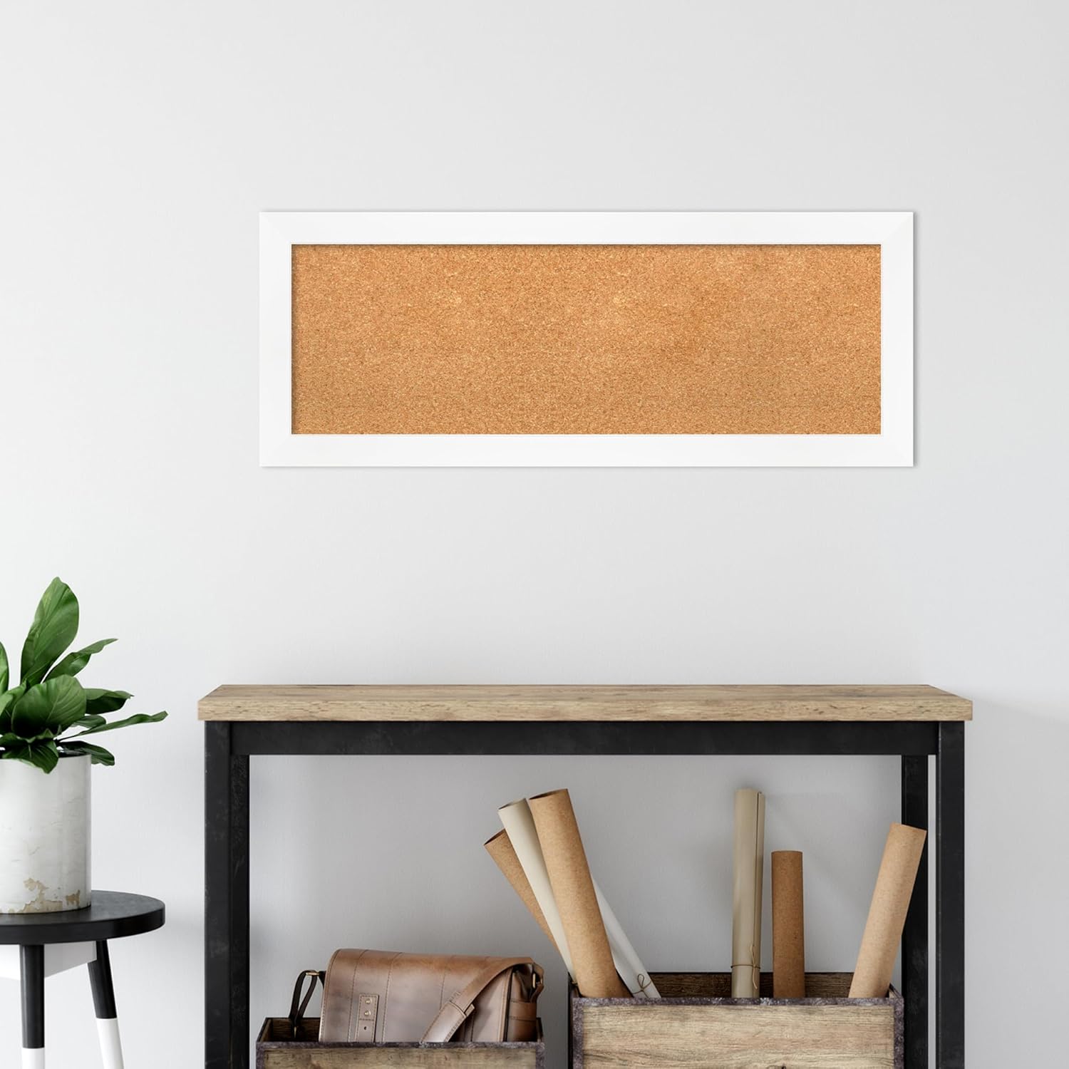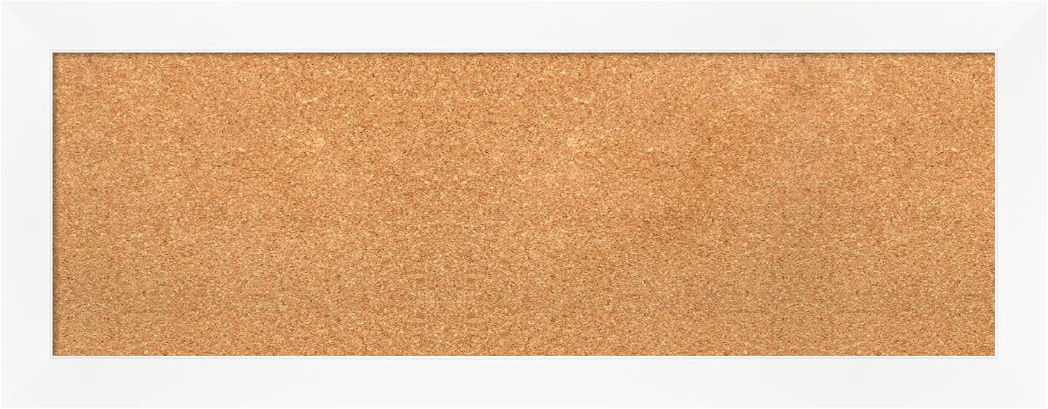 Amanti Art Natural Cork Board for Wall, 15x39 Vision Board with White Frame, Medium Corkboard Office Decor for Home Organization, Modern Corkboard Pinboard to Display Items for Home Organization in