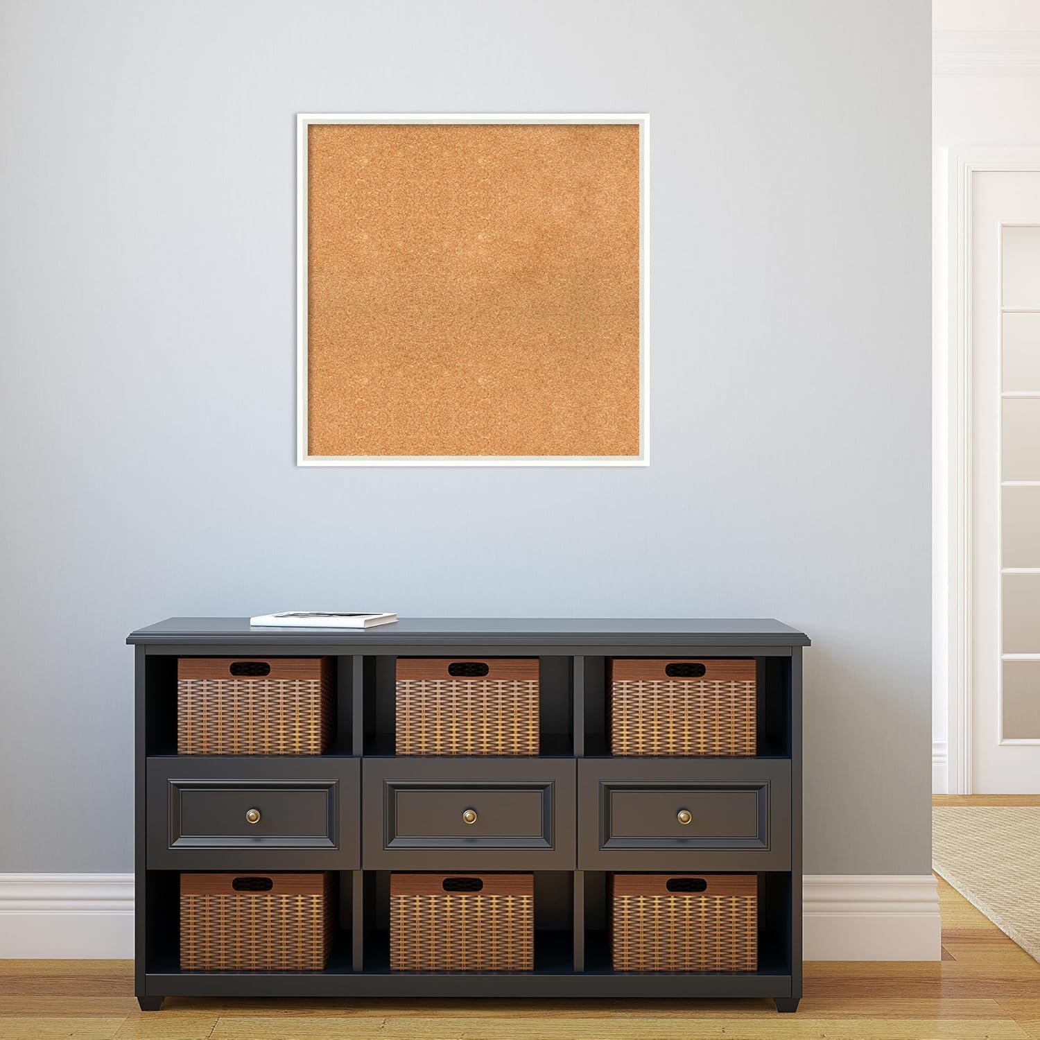 Amanti Art Natural Cork Board for Wall, 27x27 Vision Board with White Frame, Large Corkboard Office Decor for Home Organization, Modern Corkboard Pinboard to Display Items for Home Organization in