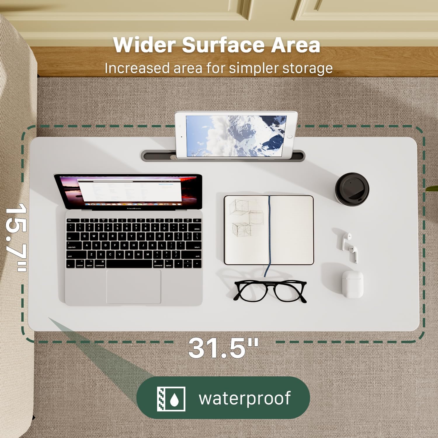 - PORTABLE STANDING DESK: 31.5" W x 15.7" D mobile workstation provides plenty of space for your daily use. Use it for your laptop or tablet, mouse, external keyboard, reading books, drawing and more