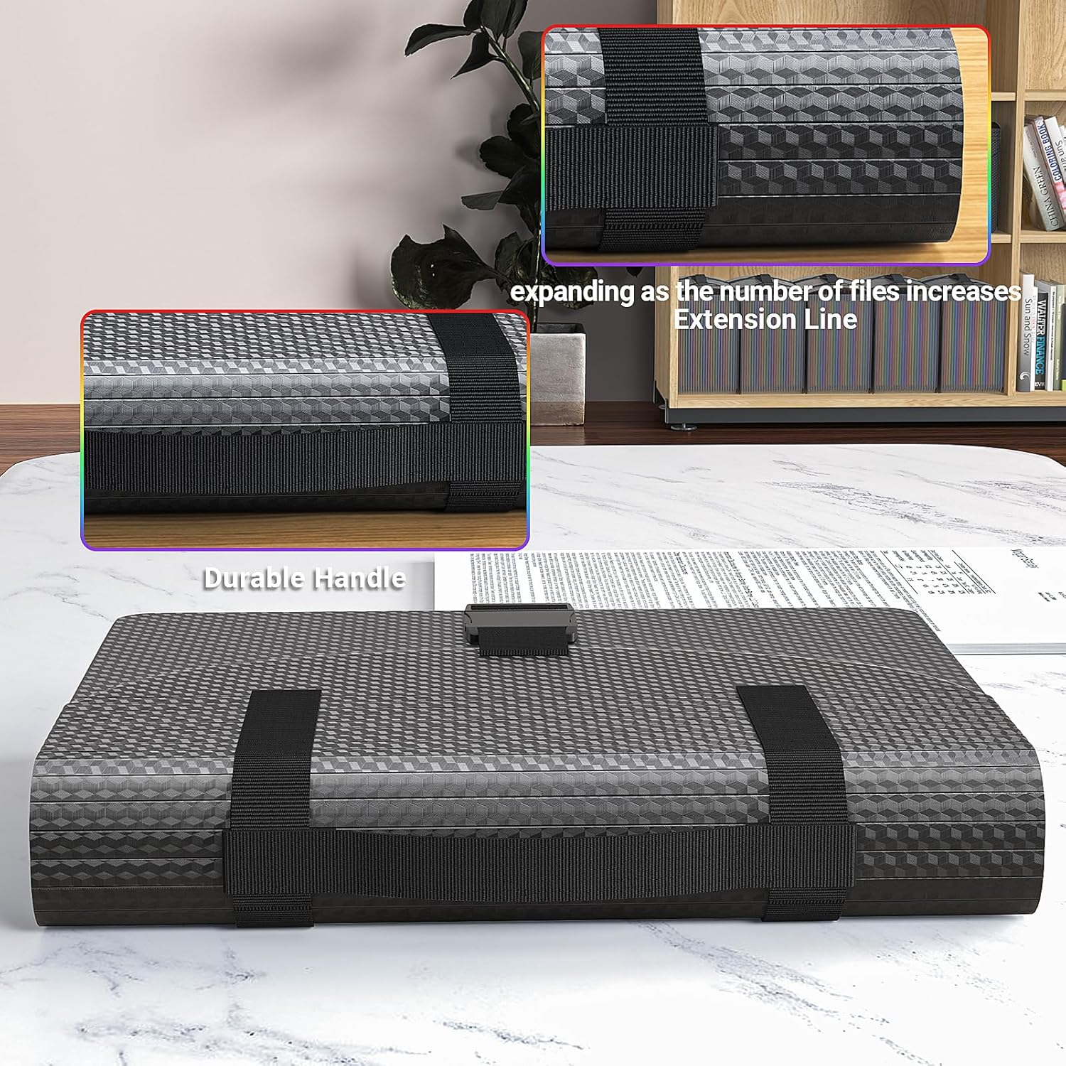 - ✔【FEATURED SECTION】The lid of file folder organizer is designed with an extension line and an adjustable carrying handle. The interior of file folders can be fully expanded and adjusted to the perfect position at will as more and more documents are put in. It's definitely a useful and fashionable expanding file folders.