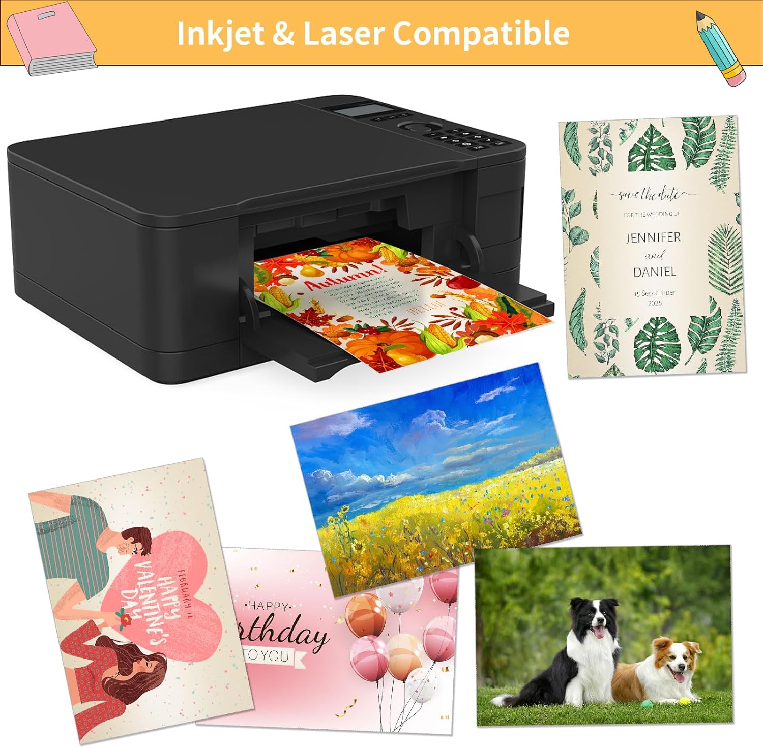 - Printer Friendly: ivory shimmer cardstock is thicker than printing paper, compatible with most types of inkjet and Laser, It holds colors well and delivers rich, vibrant colors and sharp images with flawless results. Perfect stock paper for home,school and office