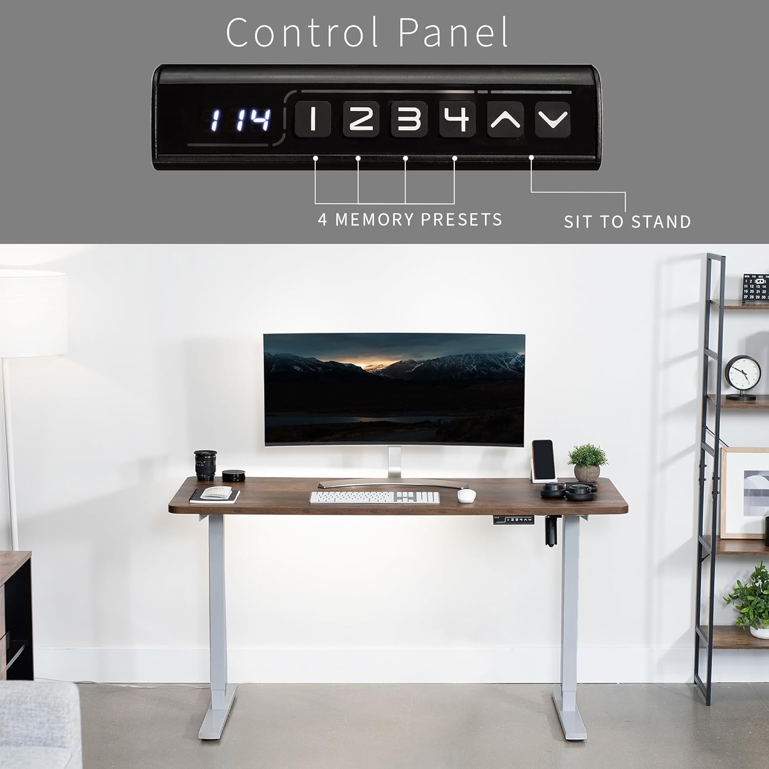 VIVO Electric 60 x 24 in Rustic Standing Desk, Memory Height Adjustment, 1B Series, One-Piece Vintage Brown Top, Gray Frame, DESK-KIT-1G6N