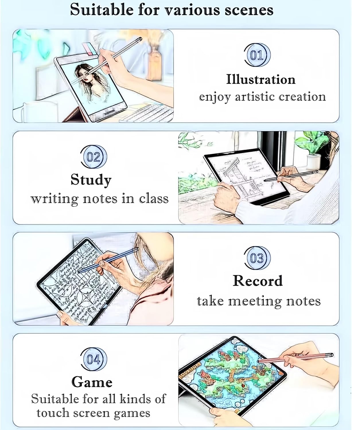- 【Full Aluminum Texture】The stylus's body made of aluminum alloy, perfect weight matching, real pen feeling, suitable for long-time use.