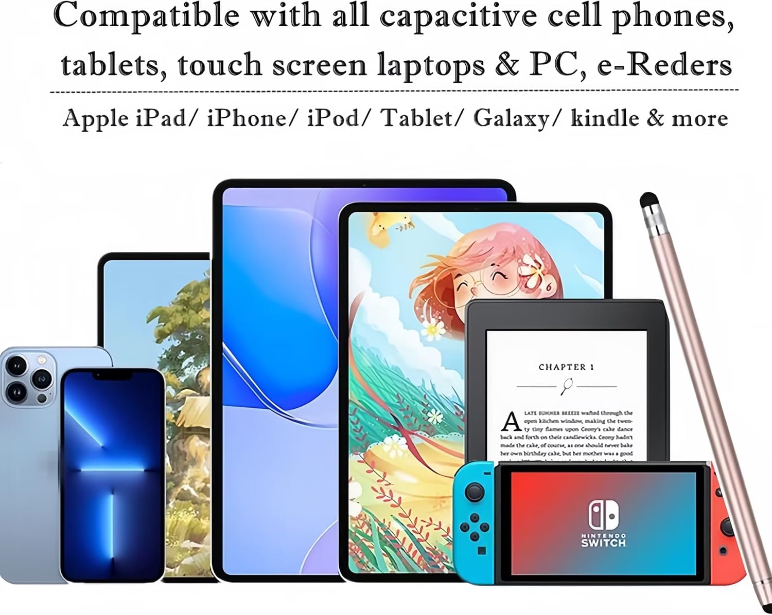 - 【Universal Capacitive Stylus】Compatible with all capacitive touch screens, smartphones, tablets, and smartwatches, including iPad, iPad Pro, iPhone, Samsung Galaxy, kindle, and more