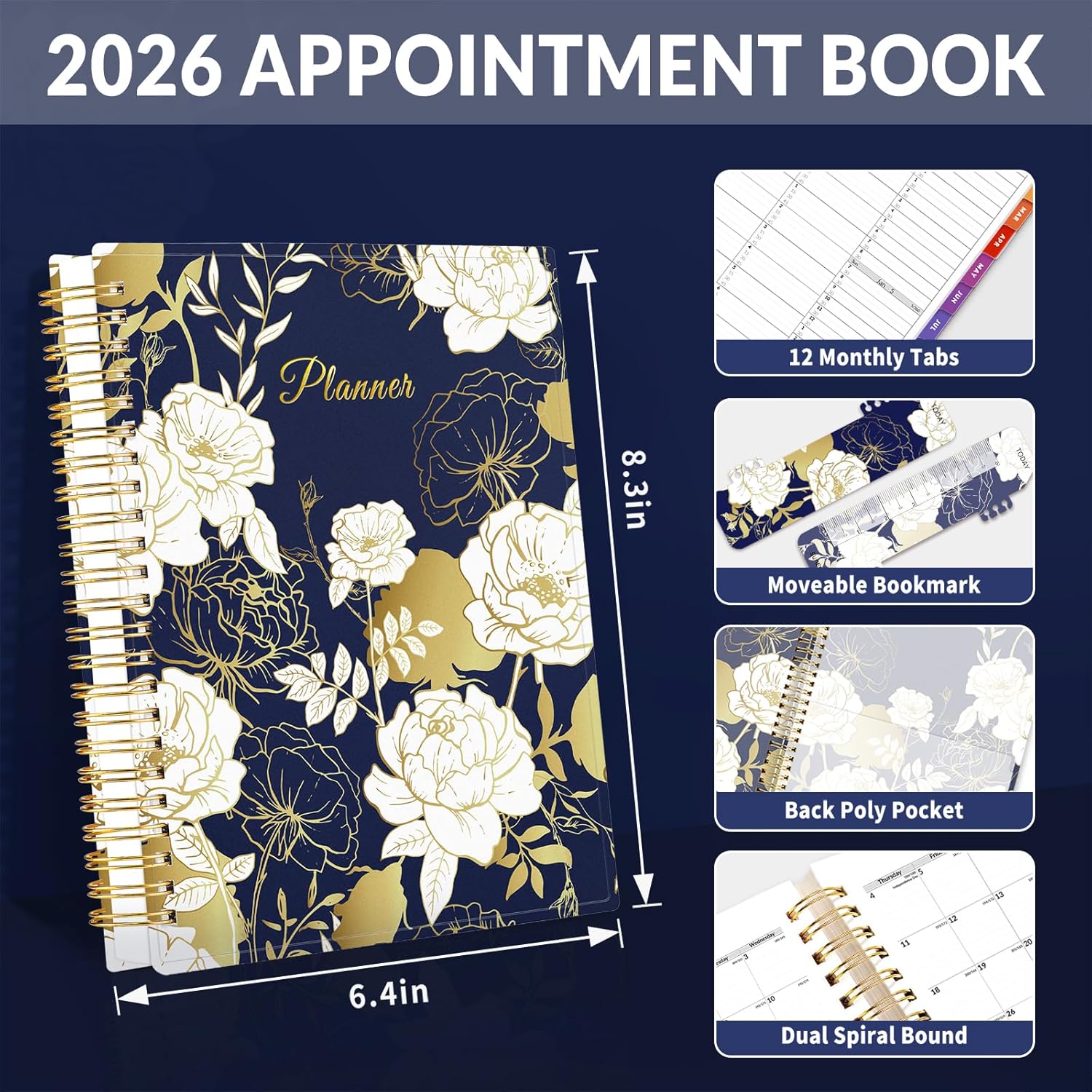 - 2026 Professional Planner - Cover from January 2026 to December 2026, Features 12 months of monthly and weekly pages, and also inclueds 3 extra monthly pages for October to December 2025 and 12-monthly tabs, with Lay-flat capability for all your planning and scheduling needs, and measures 6.4"x8.3".